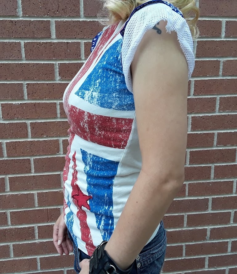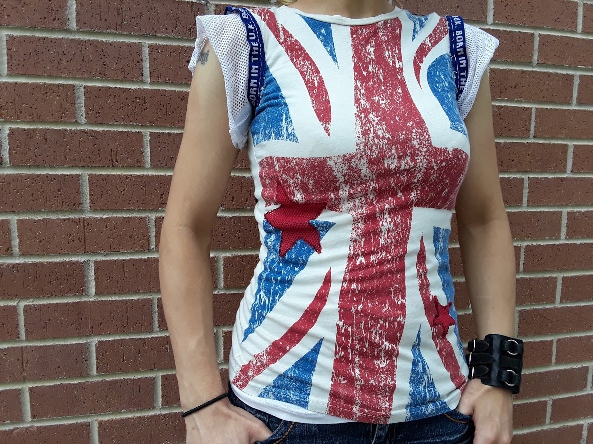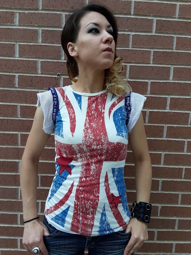 Upcycled from a plain ol' British flag shirt. Gave it a punk rock flare but I've outgrown this style.