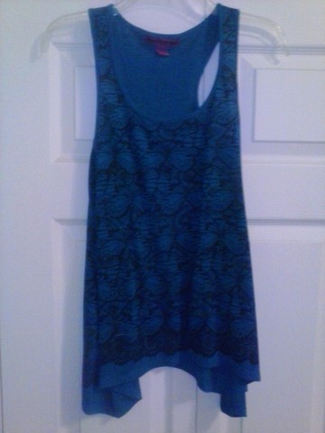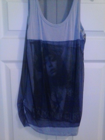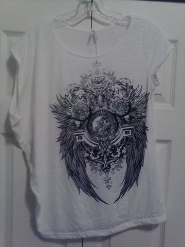 This shirt is a re-swap, just doesn't fit me right. It has the portrait of a lady on the front, not sure who? And it has mesh covering it in the front and then complete mesh in the back. Really cute! Wish it would have worked for me.