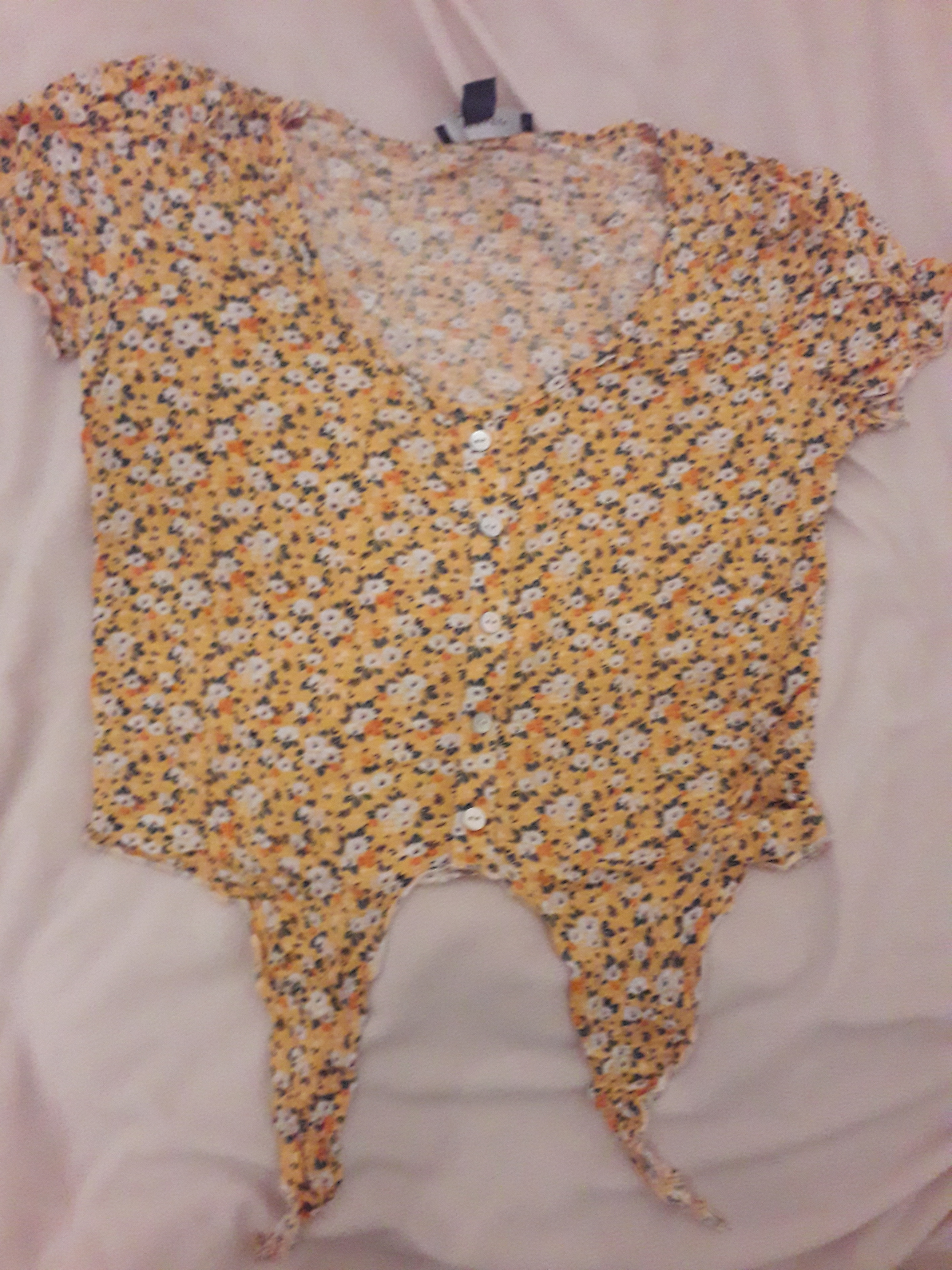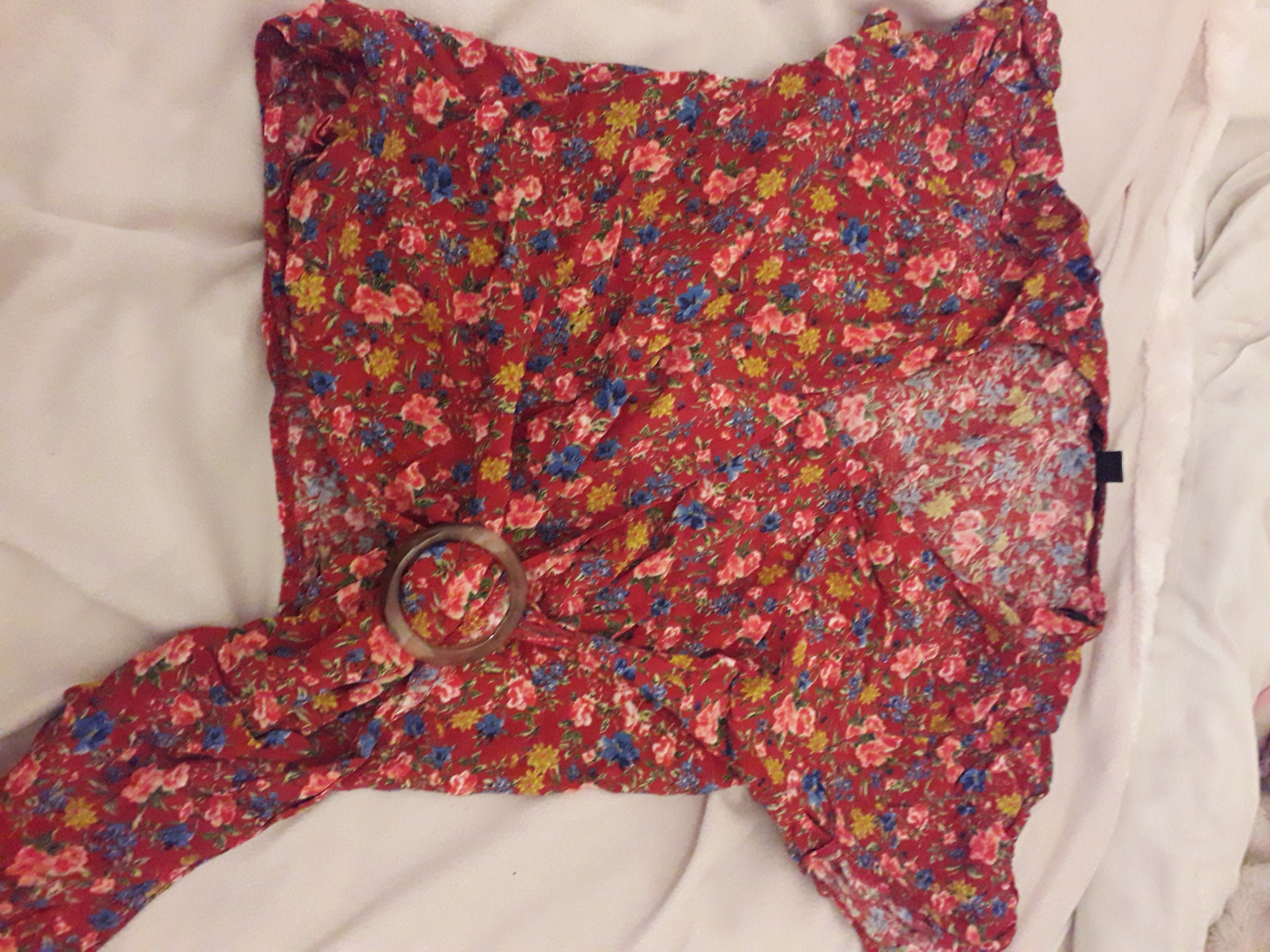 Never worn. Lovely top just wish it suited me. Loop at front to adjust shape and ties inside.