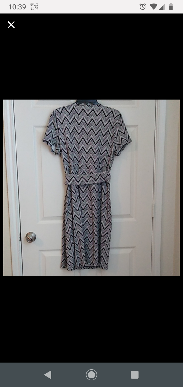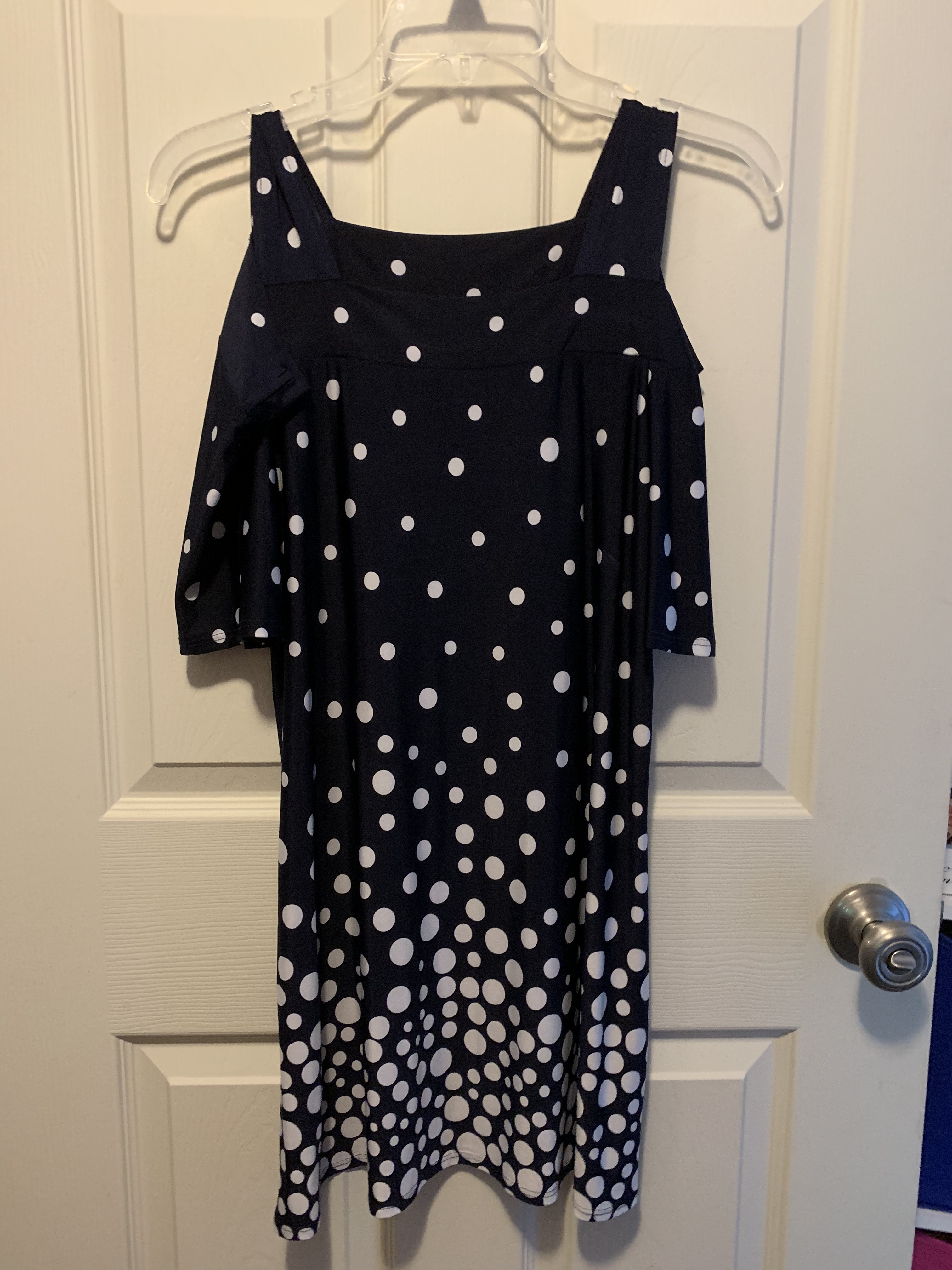 Cute Blue Lace Dress It is a Medium but runs small. would be nice for Party or on a Lunch Date. it is short over the knee