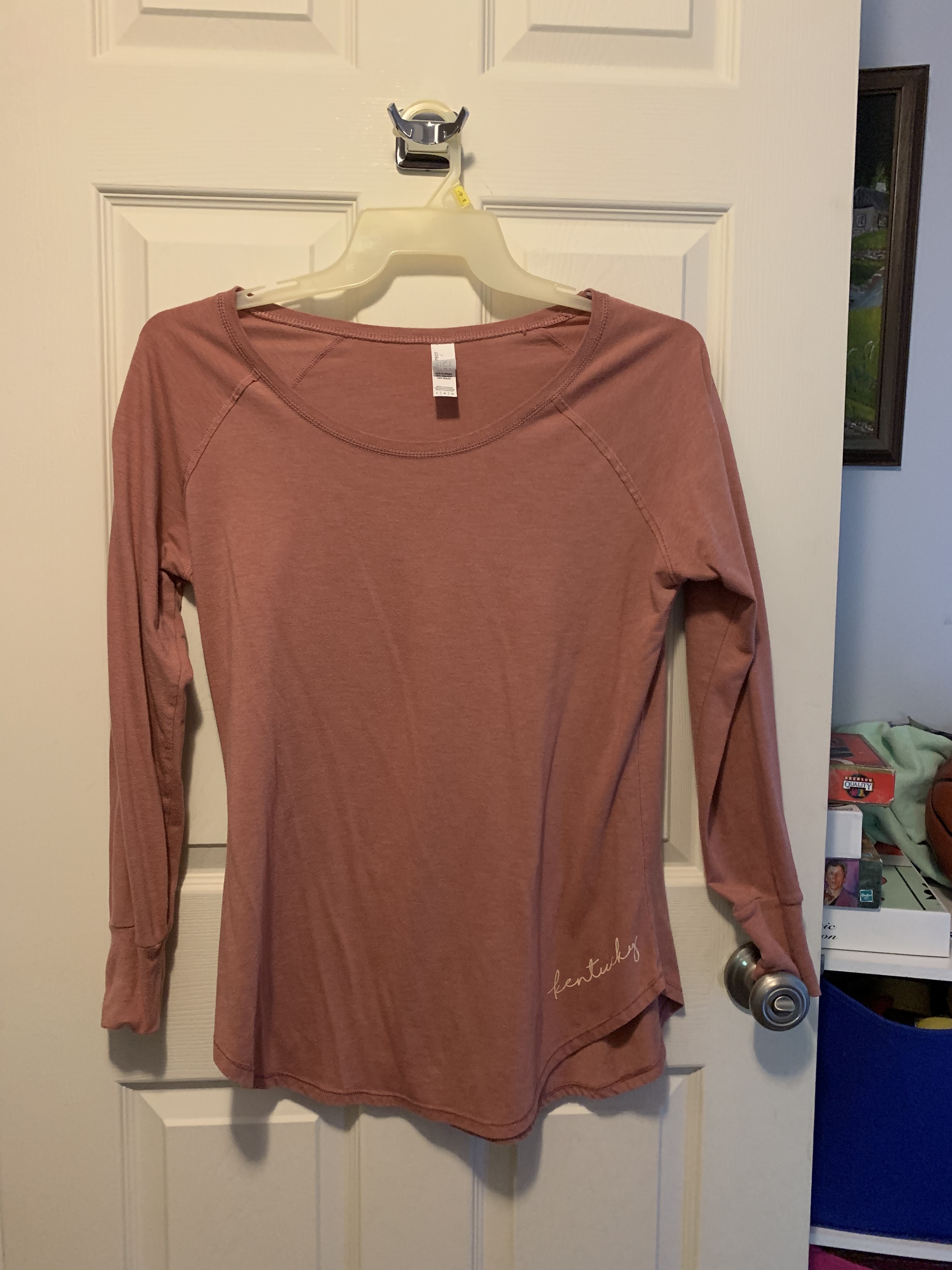 Apt 9 Brand, B&W pheasant top, size M Purple sleeveless pheasant top, size M Solid Purple sleeveless pheasant top, M Navy/White polka dot, cold shoulder, size M Bright orange, flowing top, size M Dark orange, Kentucky logo long sleeve, size M AE super stretch khakis, size 12