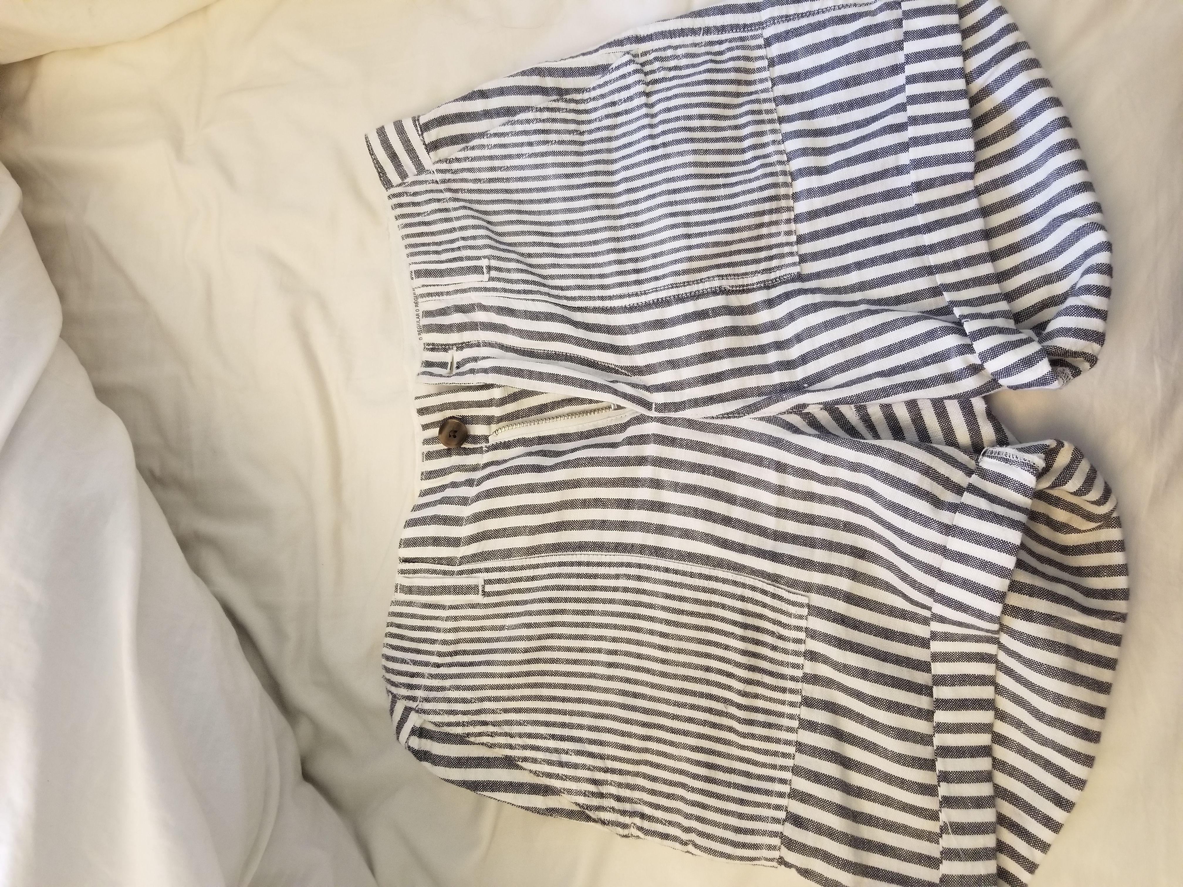 Size 0 (can fit a 2), high waisted, cuffed on the bottom, front and back pockets. Super cute and comfortable for the summer or with tights