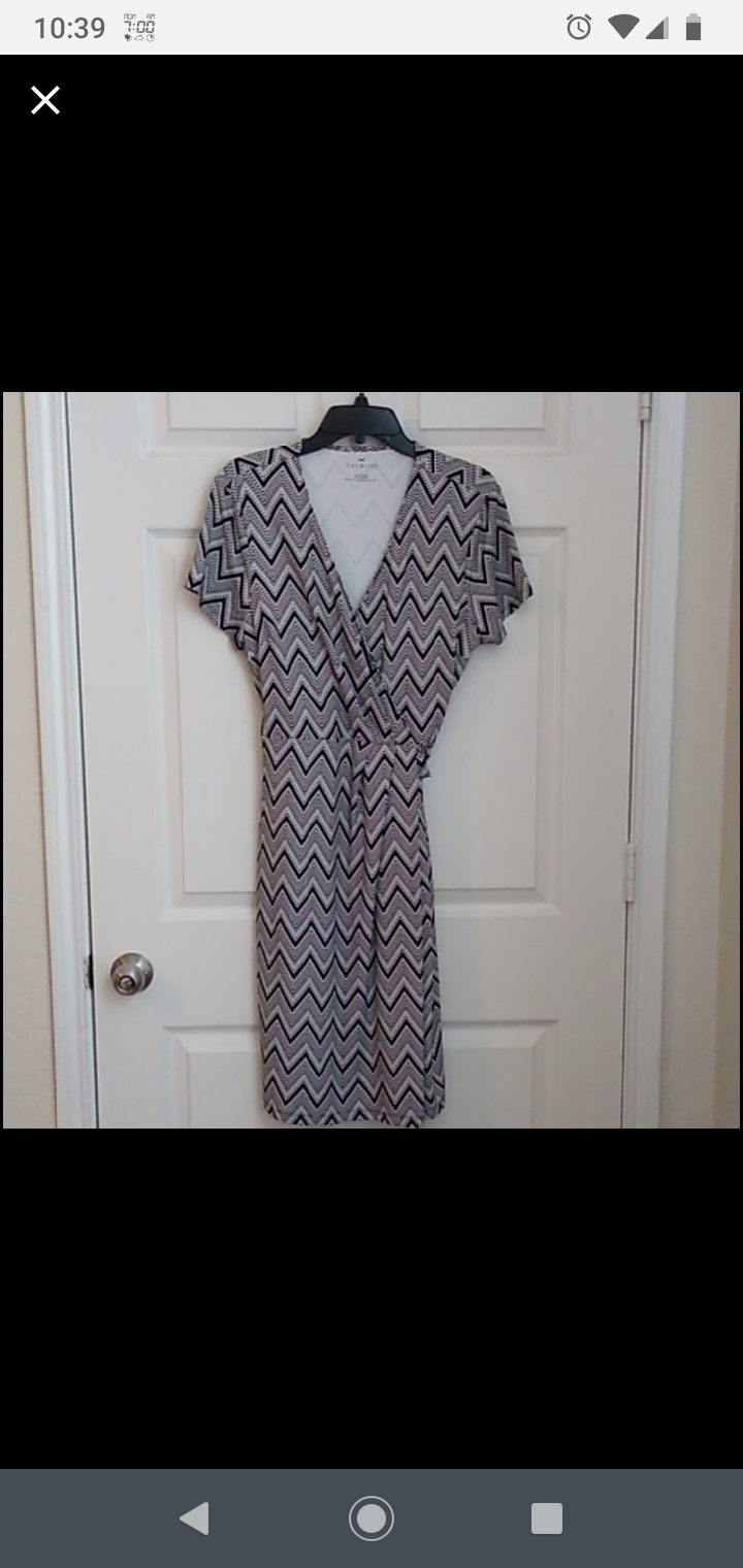 This Forever 21 dress is in practically new condition. It is equal parts black and earth colored, with a consistent diamond pattern. There is a drawstring at the waist for adjustment, as well as adjustable straps at the top. It is a size small.