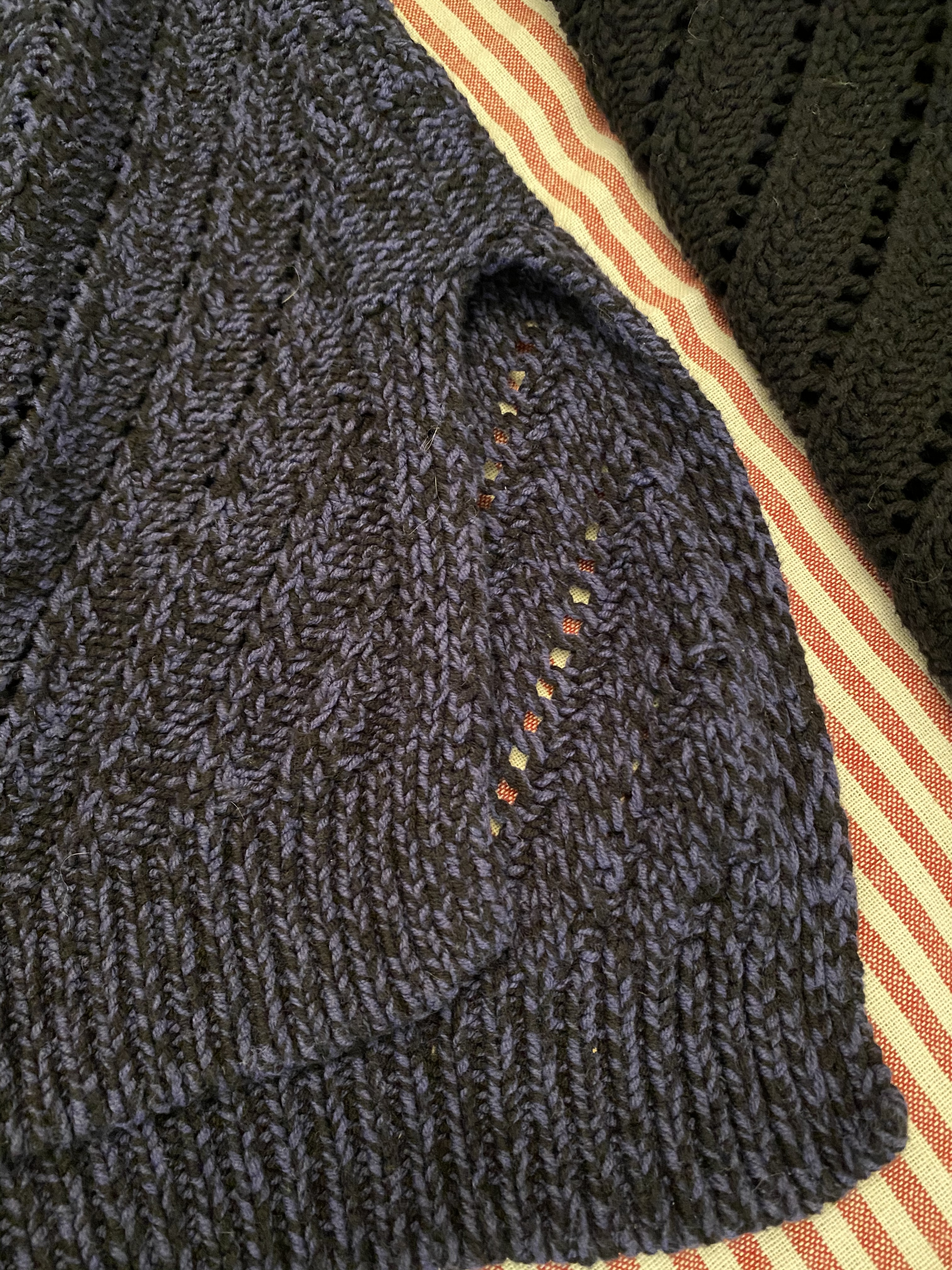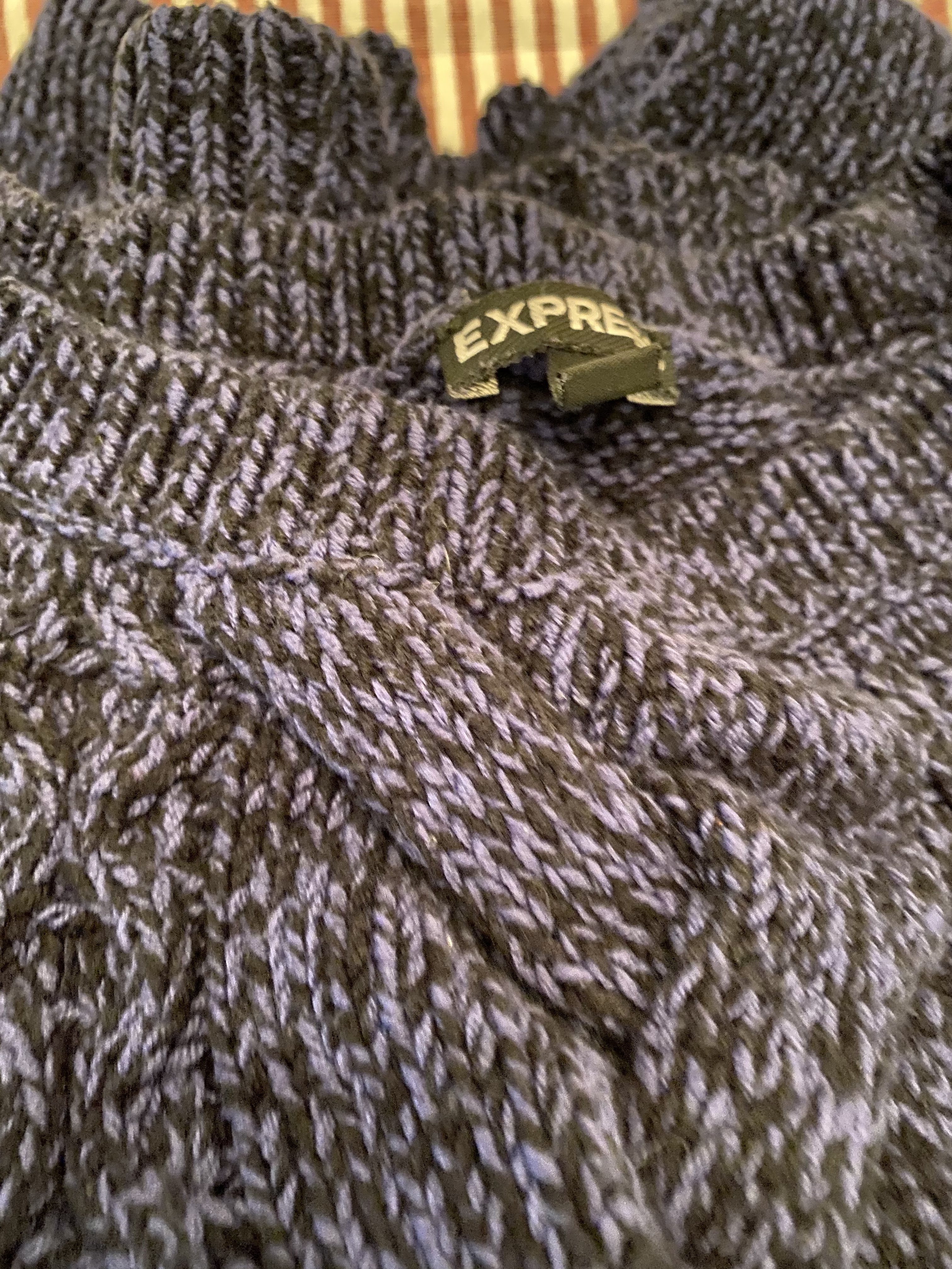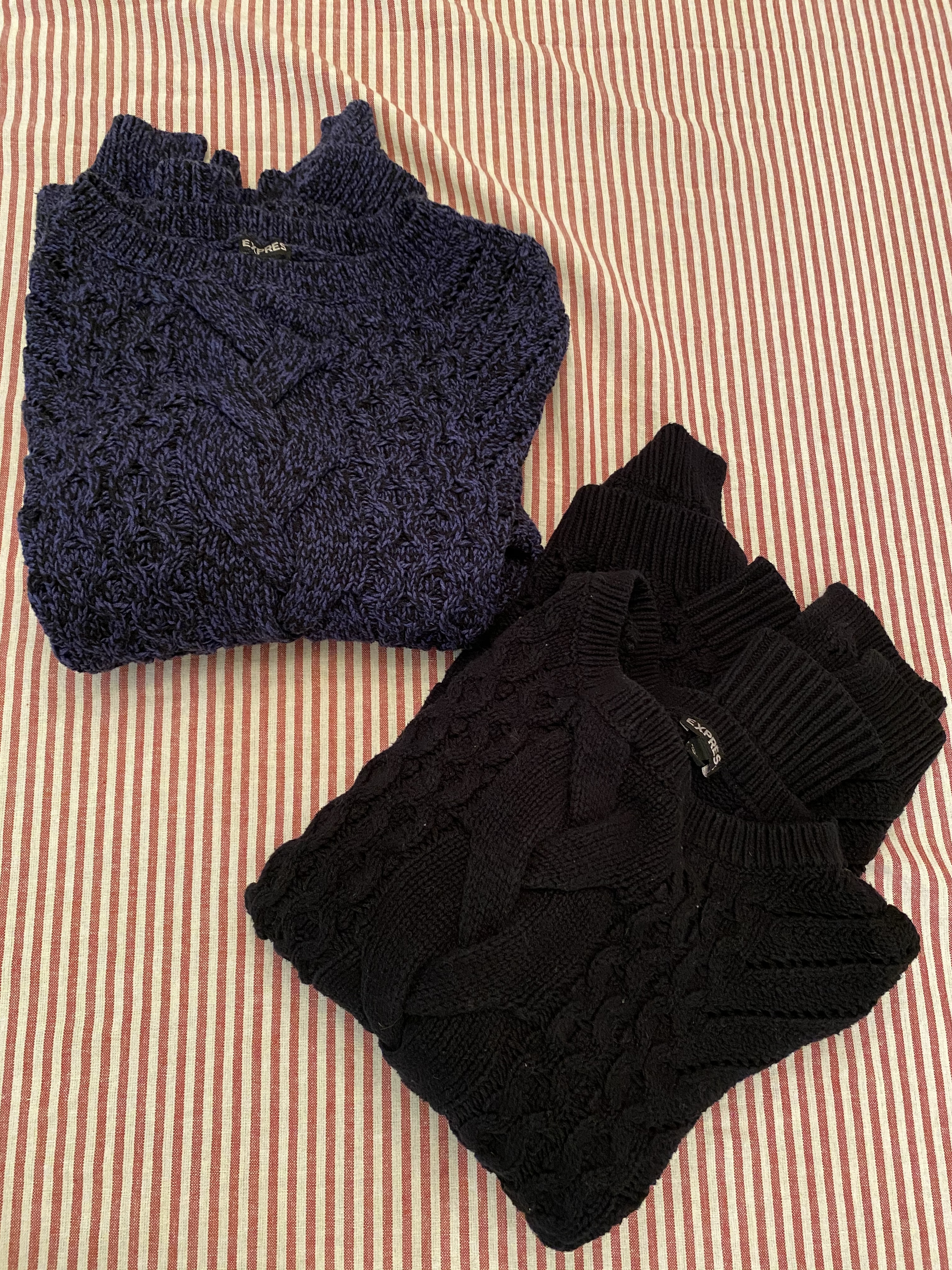 One black and the other is blue. Beautiful women’s sweaters by Express. Size L.