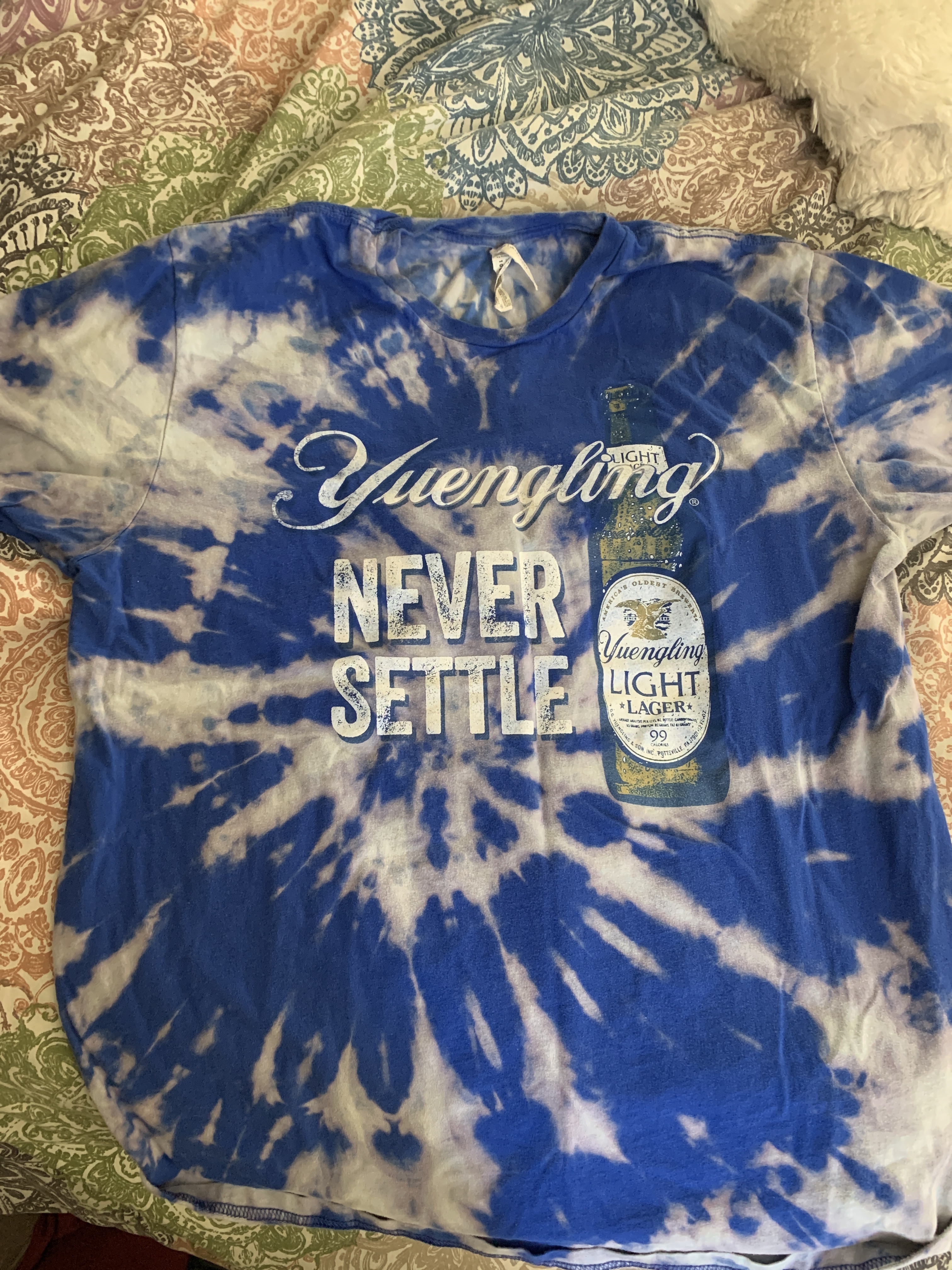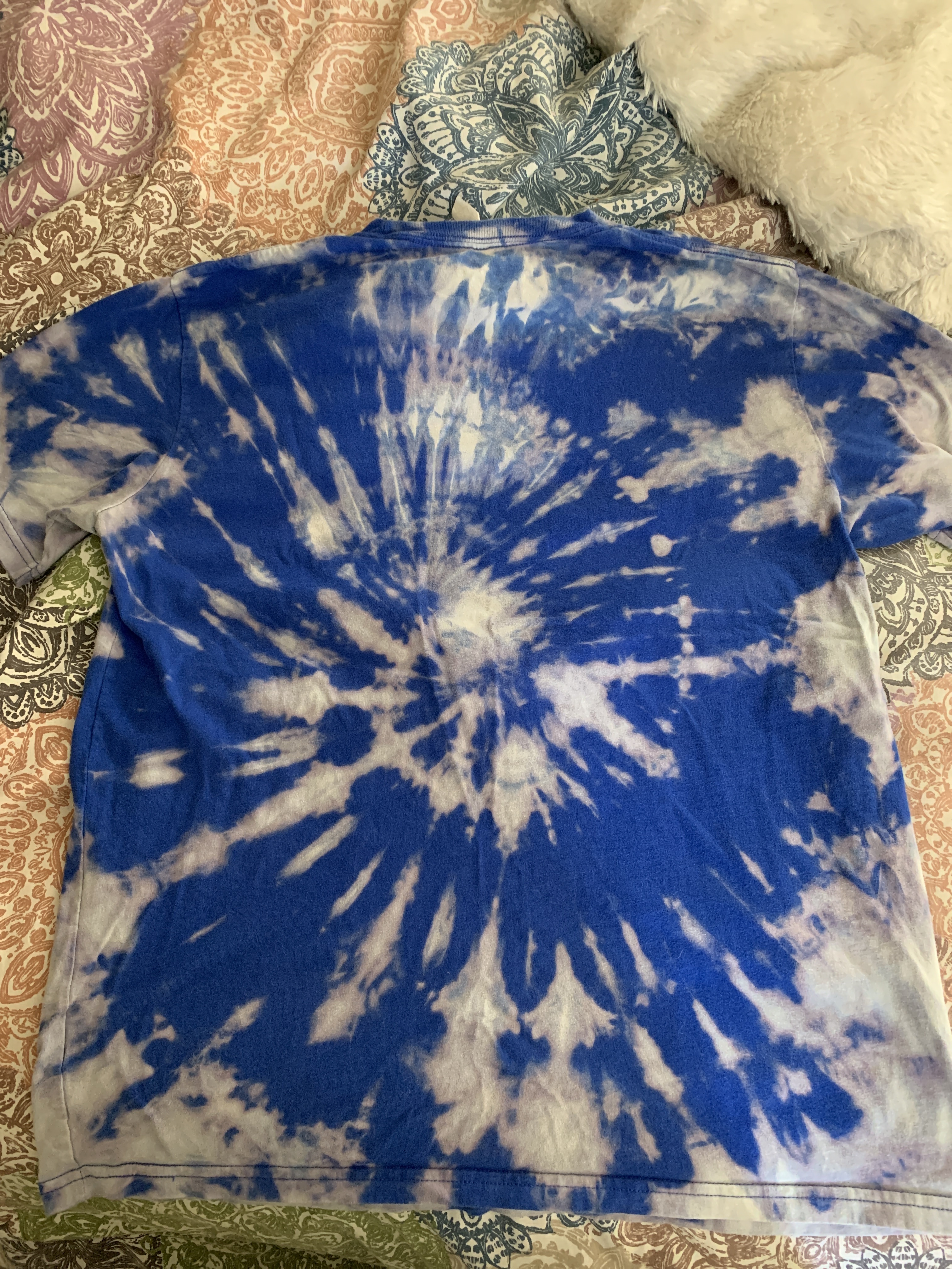 I tie dyed this shirt during quarantine and absolutely love it but done wear it enough. Size large casual T-shirt fit.