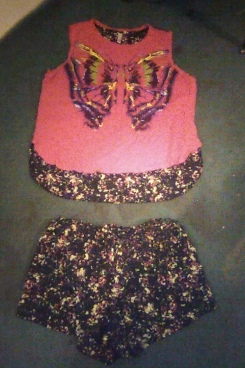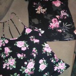 Two piece set brand exhilaration size xxl silk like shorts and back is all silk matching shorts