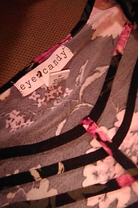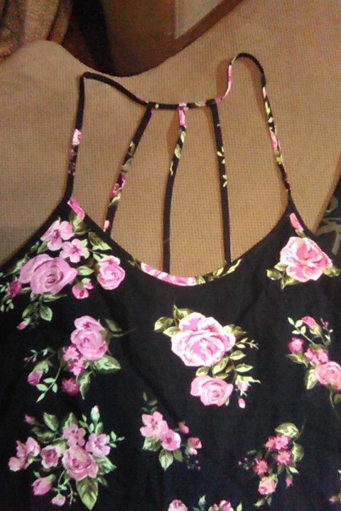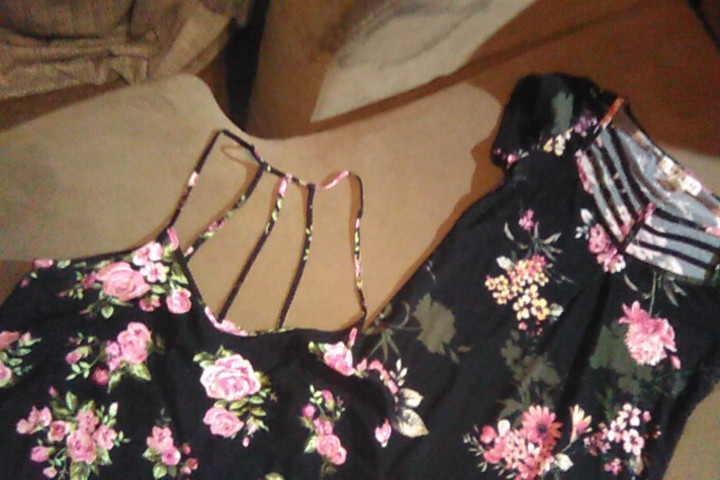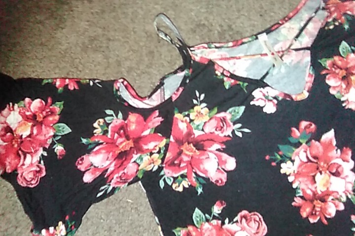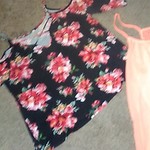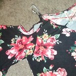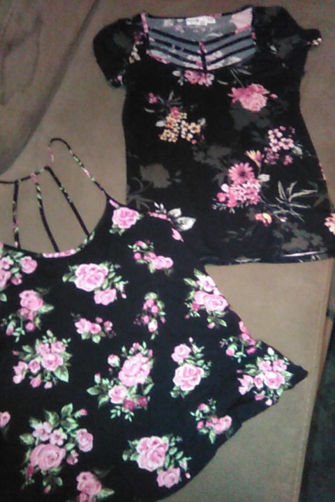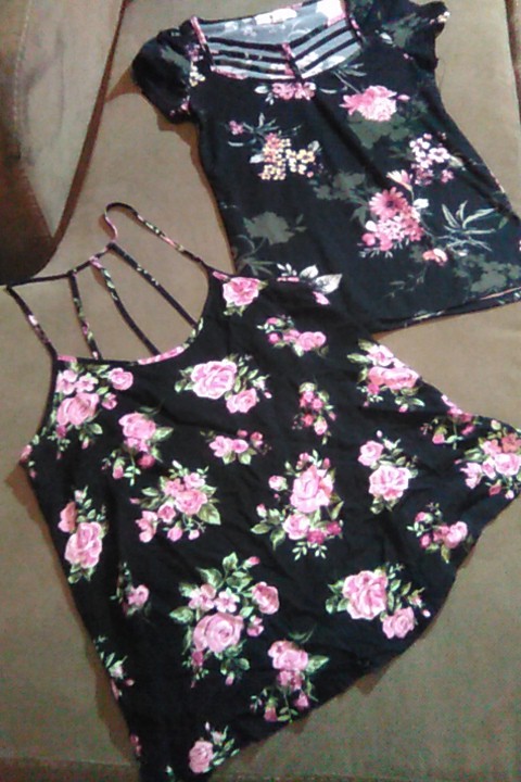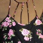 Two med black tops with pink roses on both both in great condition eye candy is brand