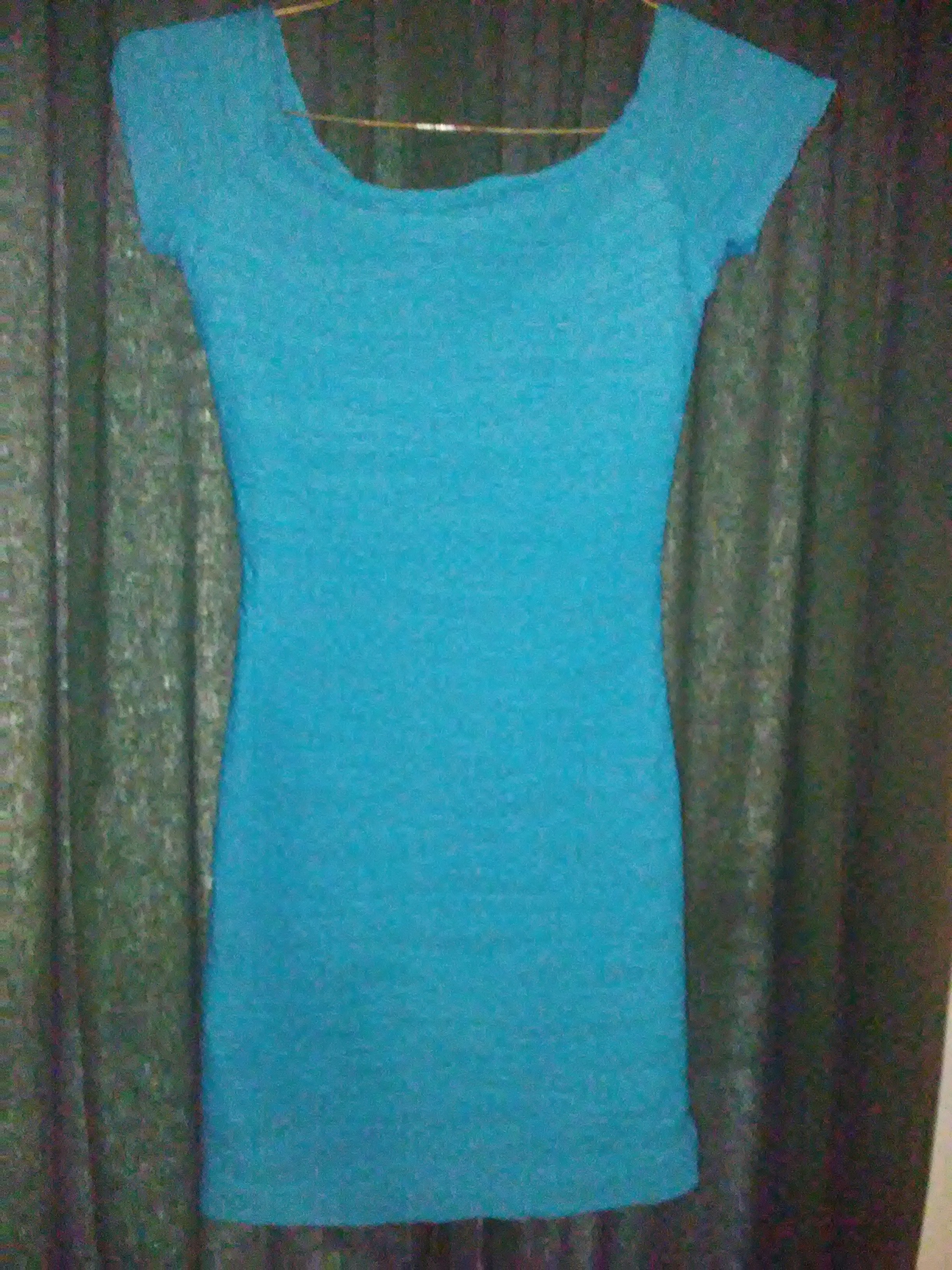 Great condition worn 1 time no sign that it was worn at all. Size 3 high front long back aqua colored strappless