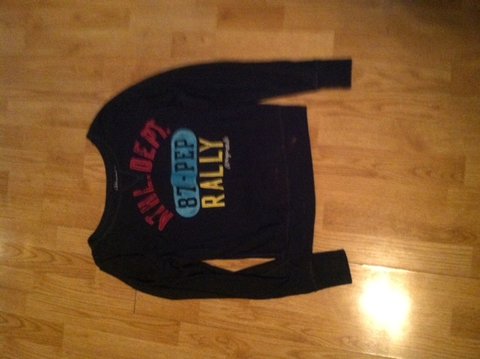 Navy Blue Aeropostale pull-over long sleeved tshirt. Supposed to be a short length. Has bleach stains at the bottom