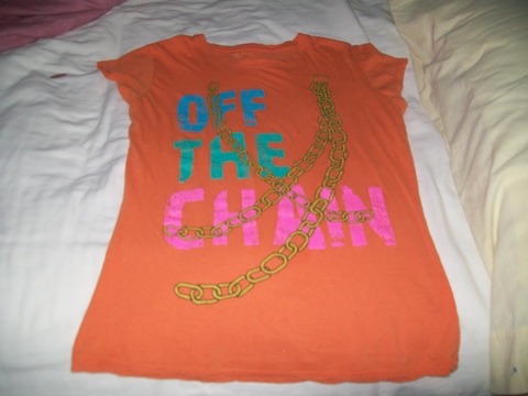 Here's a tee top size SMALL. In great condition overall. I worn it a few times. Not my style anymore.