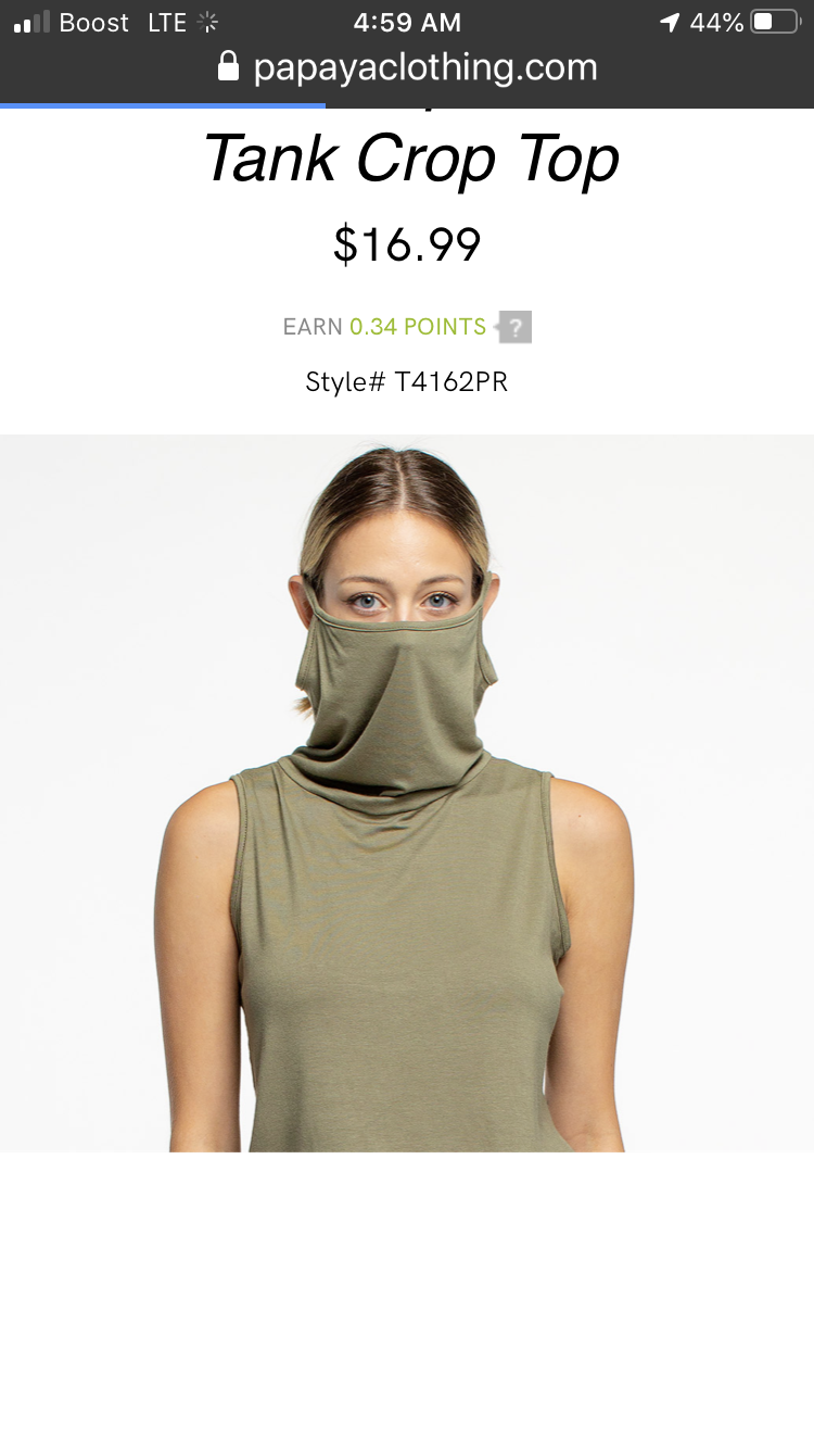 Brand new papaya 2 in 1 tank top + face mask. Still has tags. Never been worn.