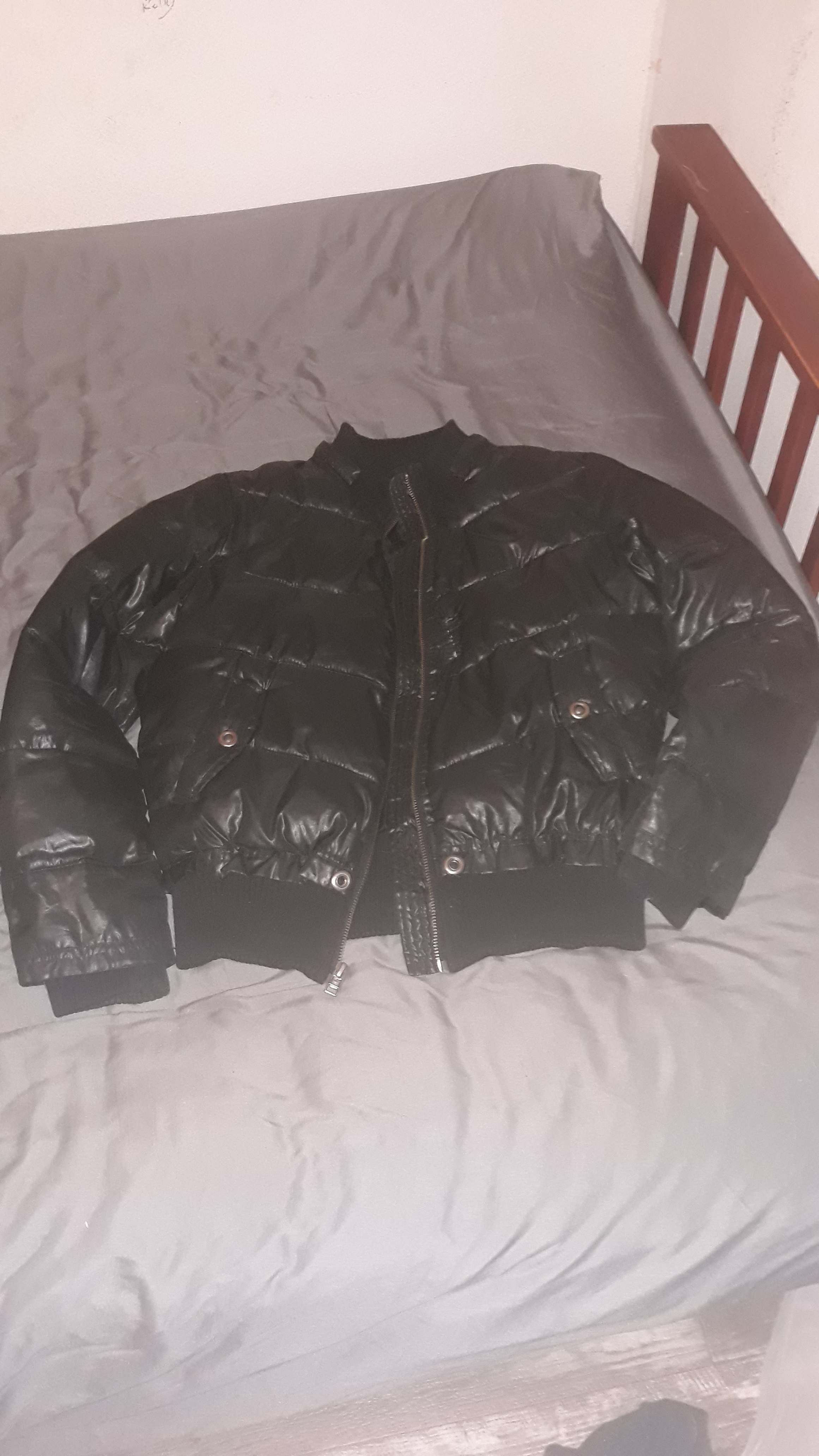 black leather kinda cropped coat, pefect for the cold weather, comertable, never worn, and great quality