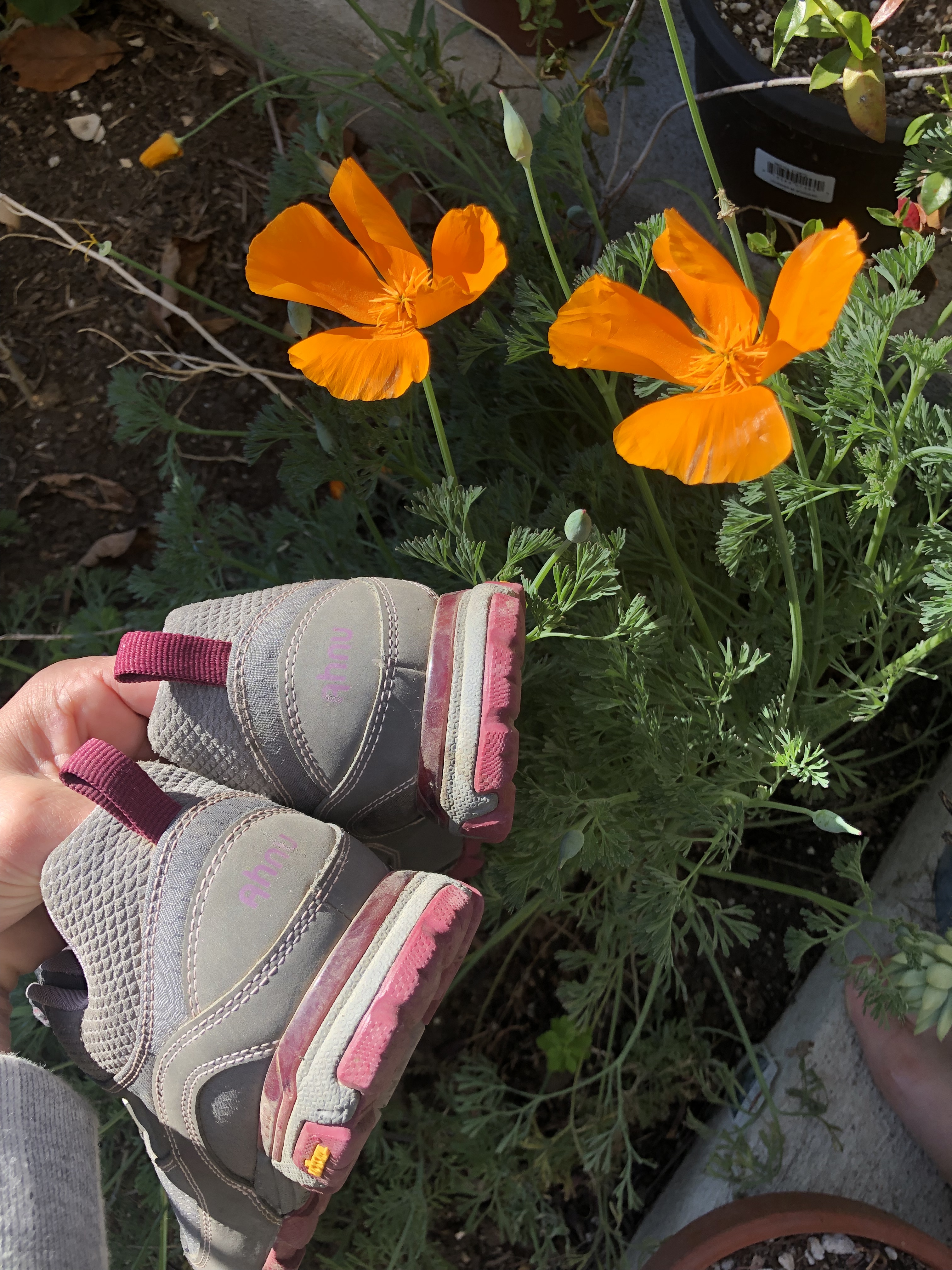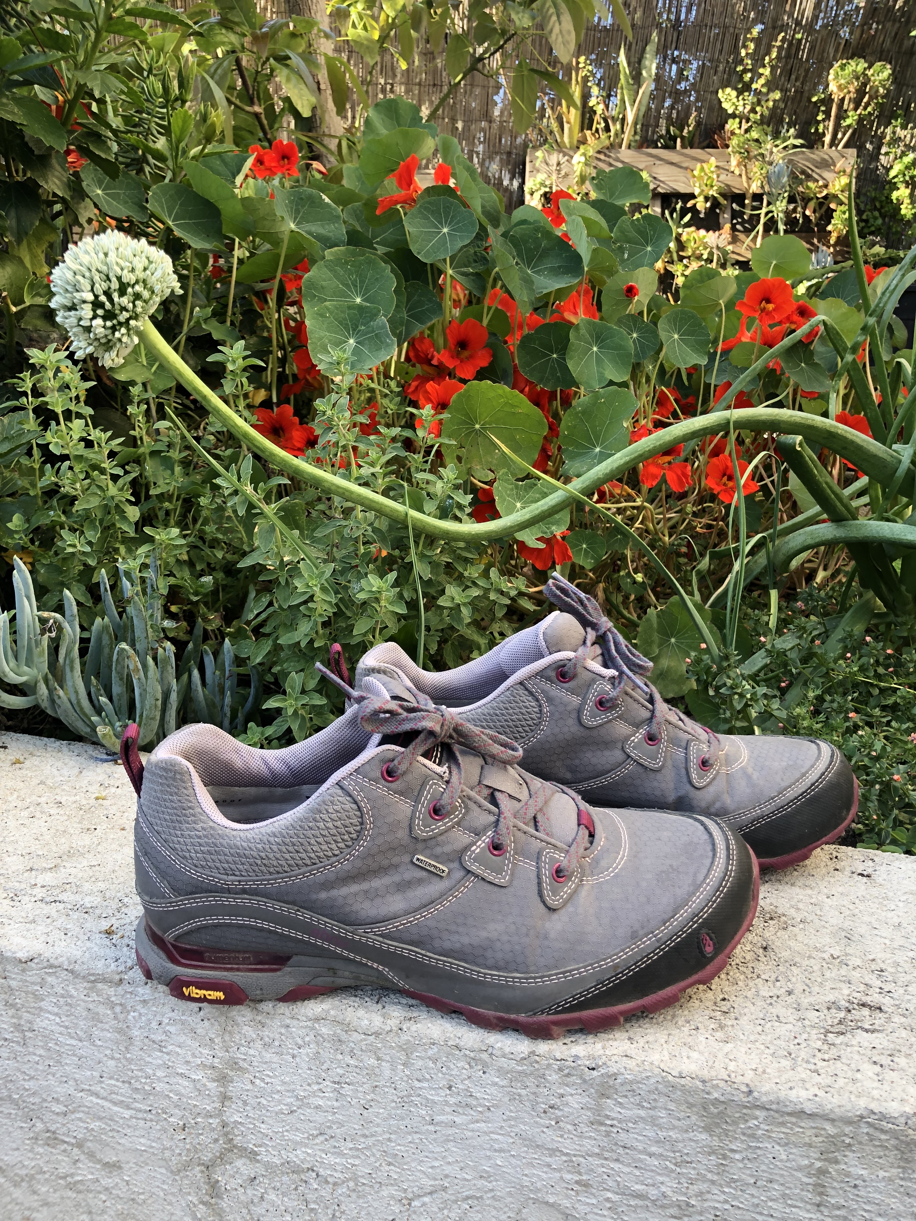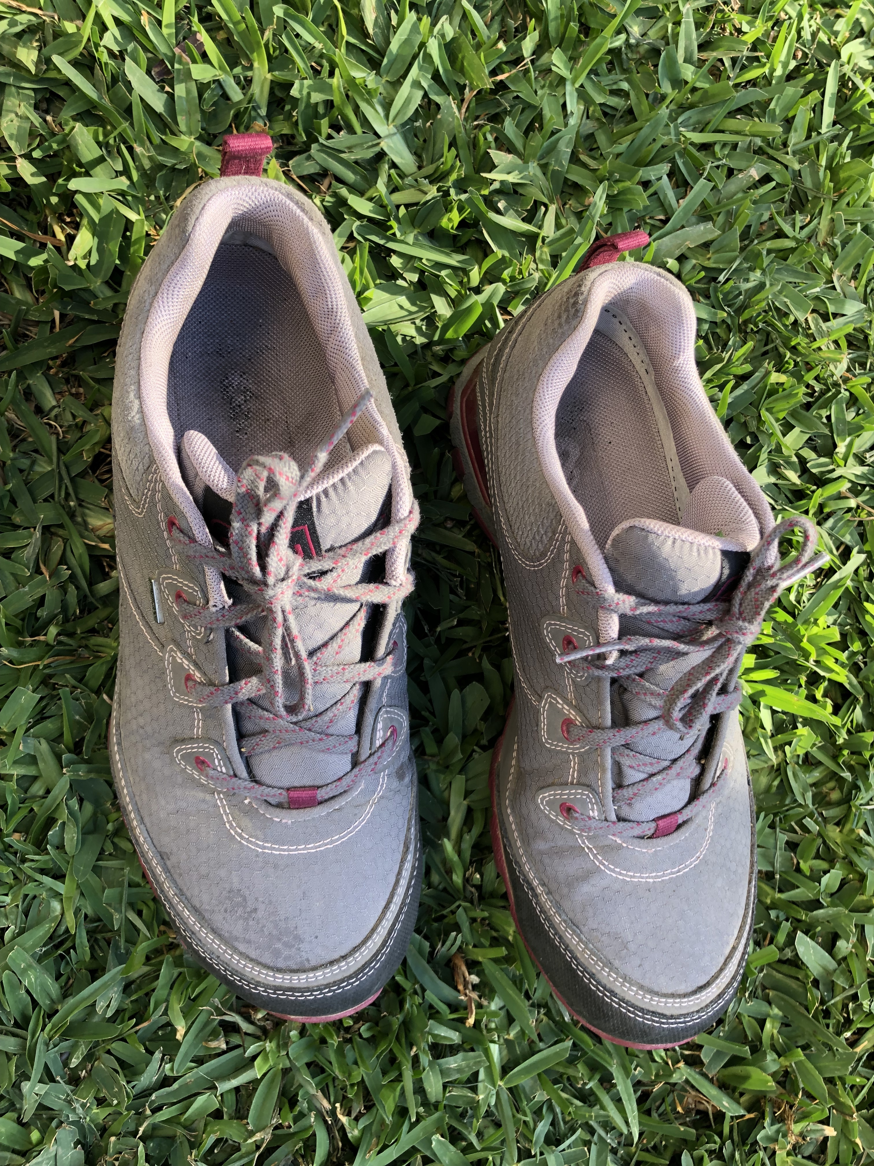 Just went on a long hike and coming to terms that these are a bit too small for me in the toe length area. Otherwise they are very comfy. They are size 8.5 but could probably fit an 8. They are super cute waterproof low hiking shoes! In gray. I have worn them a handful of times.