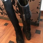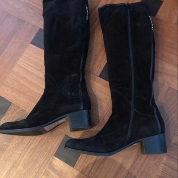 These black Knee high boots I purchased in Italie are super comfortable. They are both elegant and casual. I only wore them about 5 times. Heels are still not for me, even when they are as comfortable as four centimeters high. You can wear those with a skirt or even with pants.