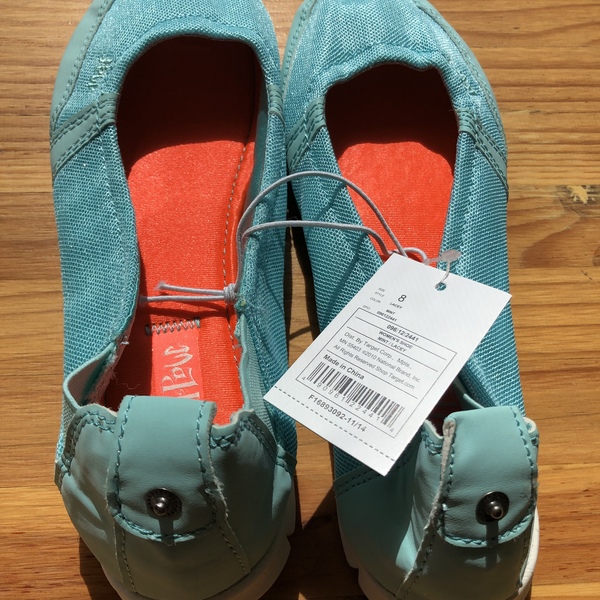 Brand new with tags flats. Mad Love brand (Target) called Lacey in the color Mint. Iris sort of a blue green teal color. Size 8. Too small for me so never worn.