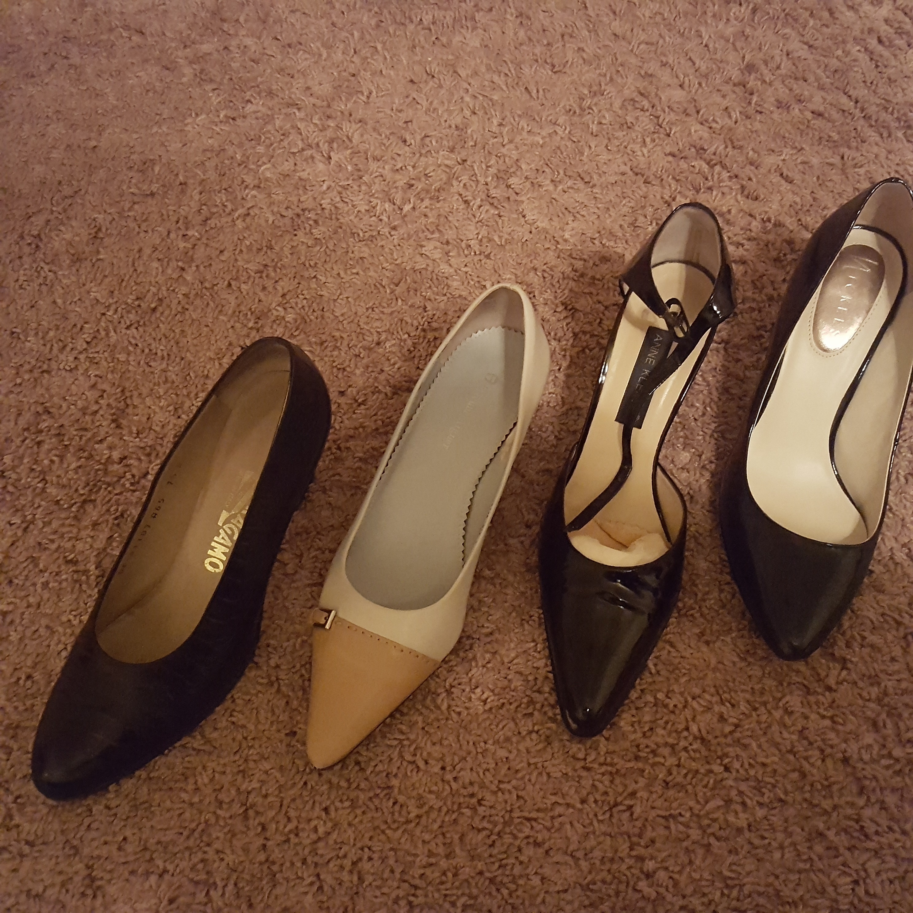 Classic dress shoes by Ferragamo, Anne Kline, Etienne Aigner, and Nickels size 7.5 B.