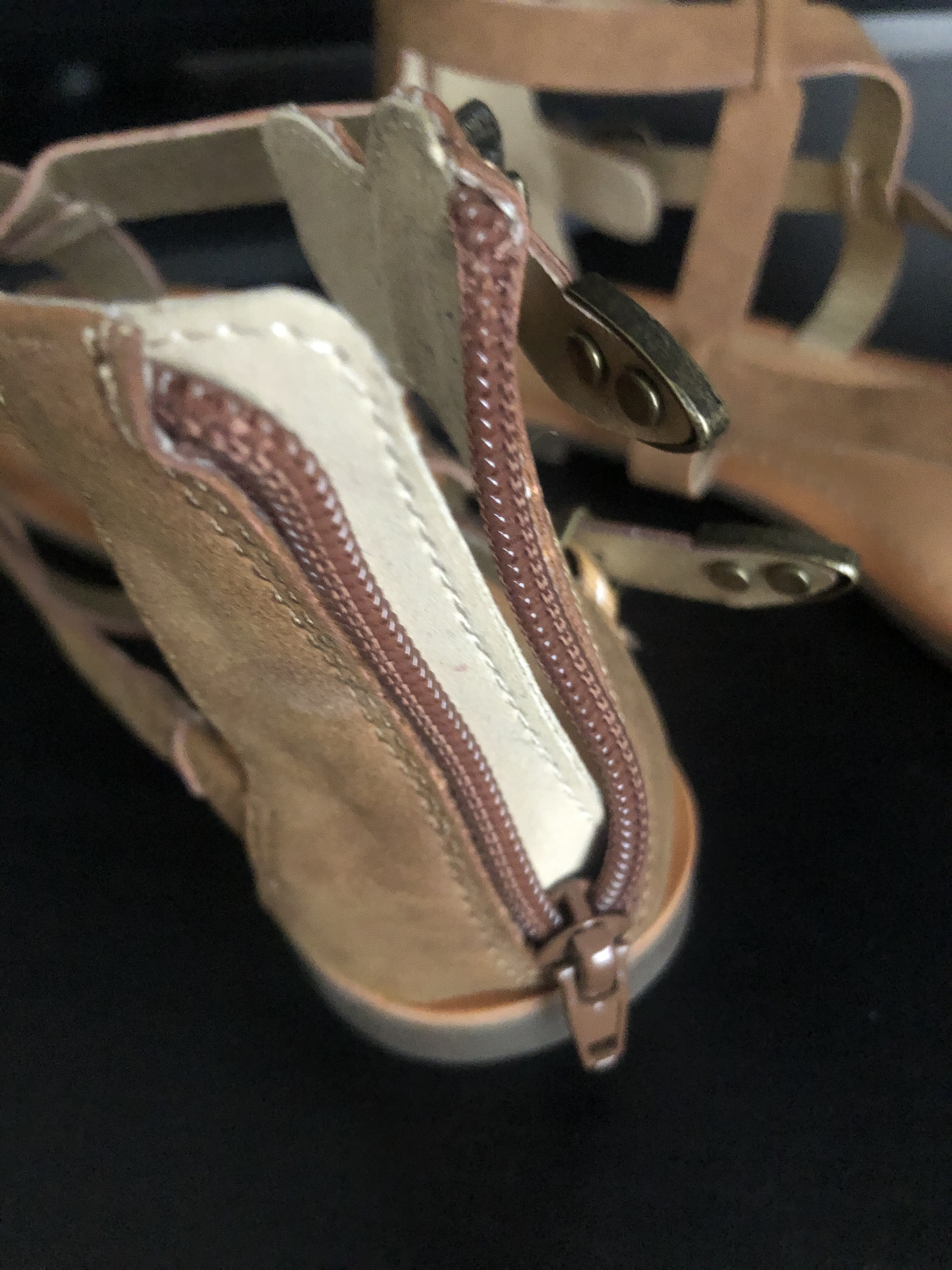 Sandals by Guess size 6.5. Come in a brown color and have zippers on the backs.