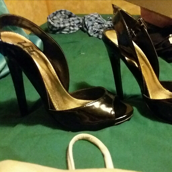 These have been worn many times. But they are still in relatively OK condition. Very comfy strappy heeled sandals.