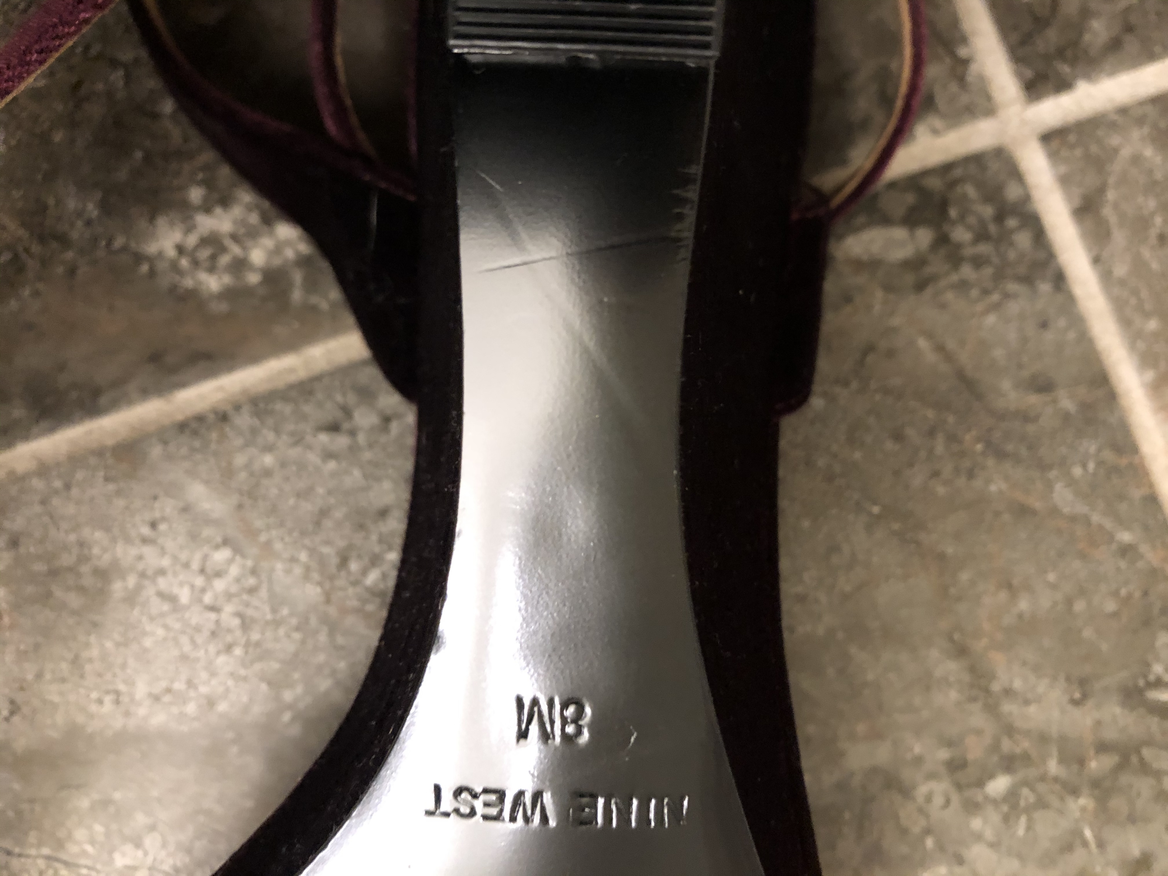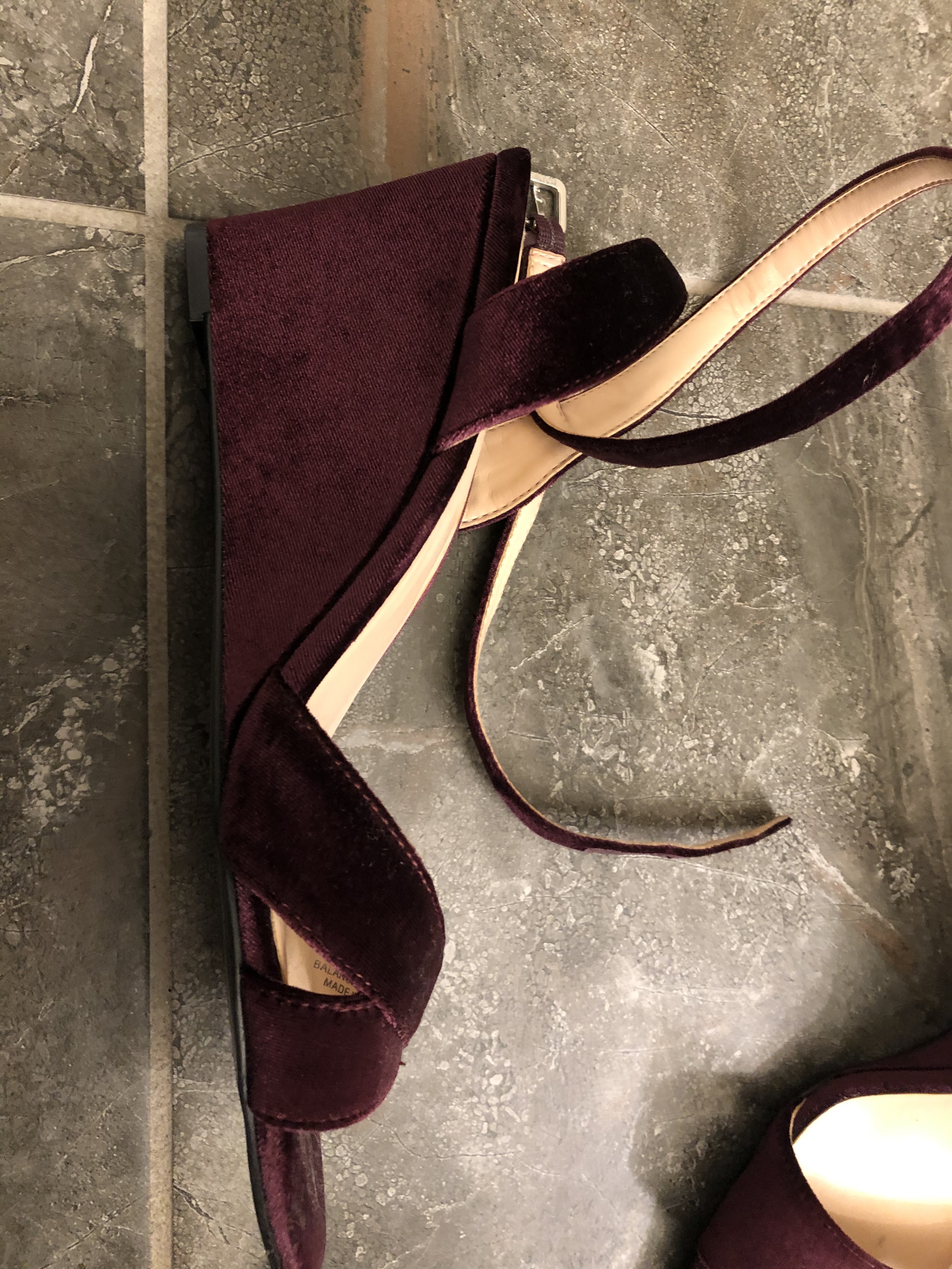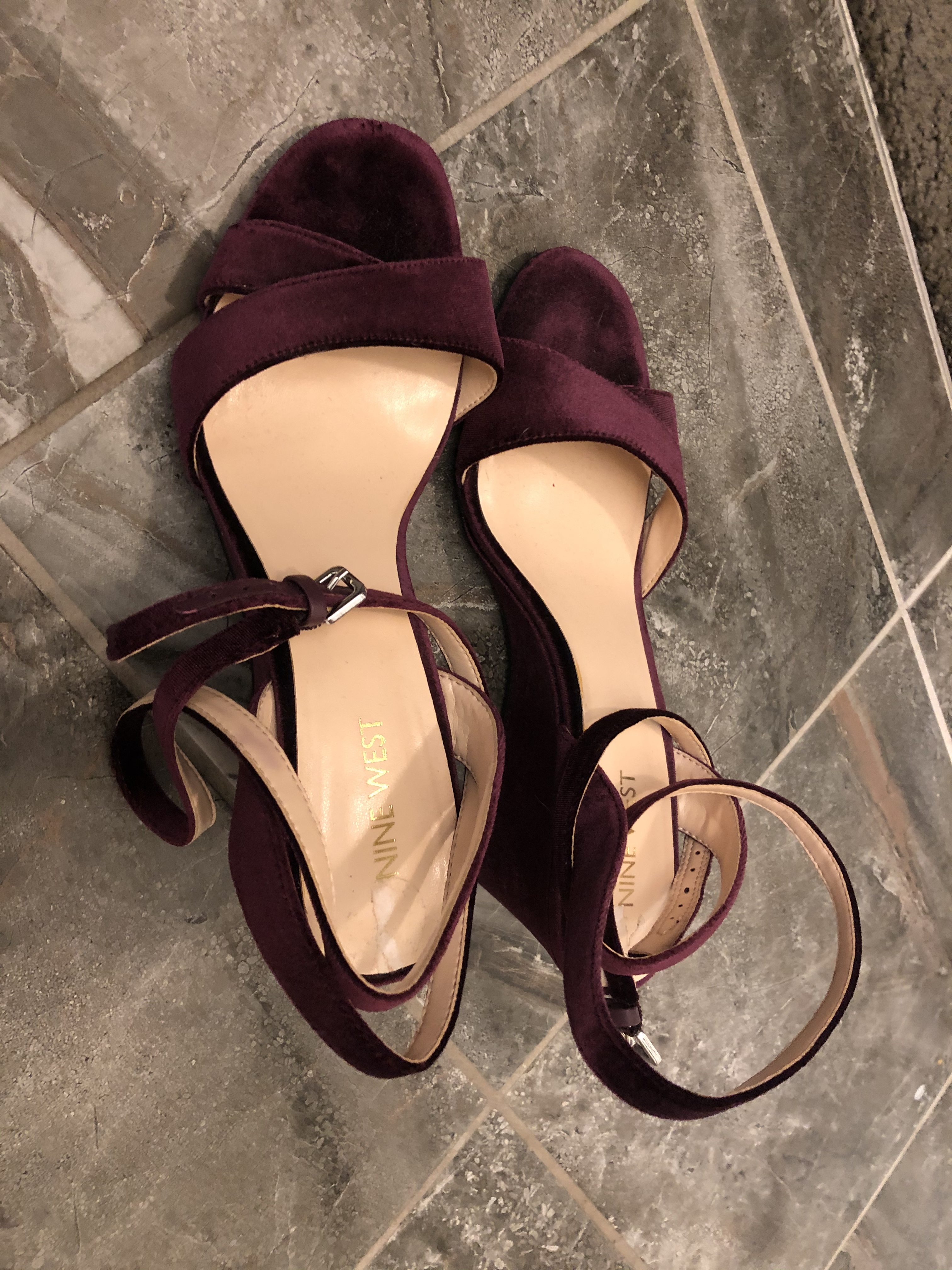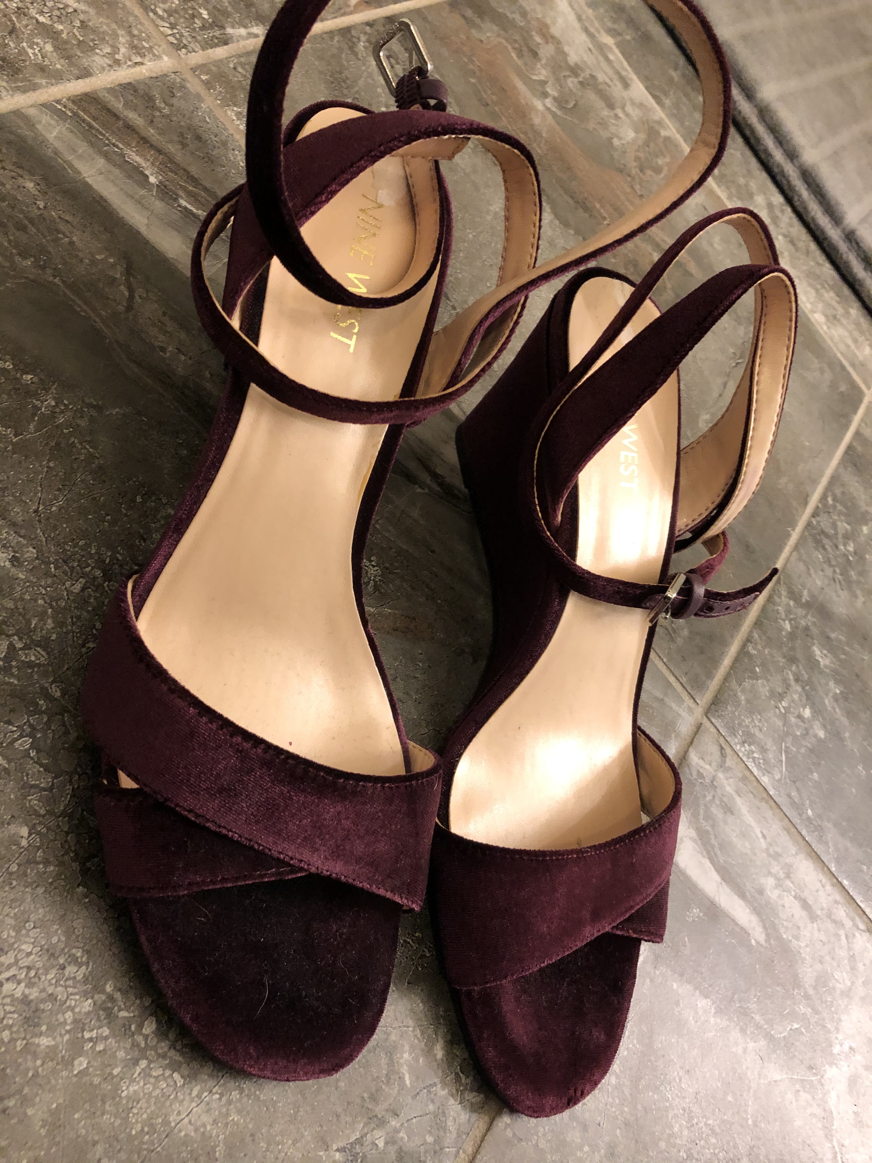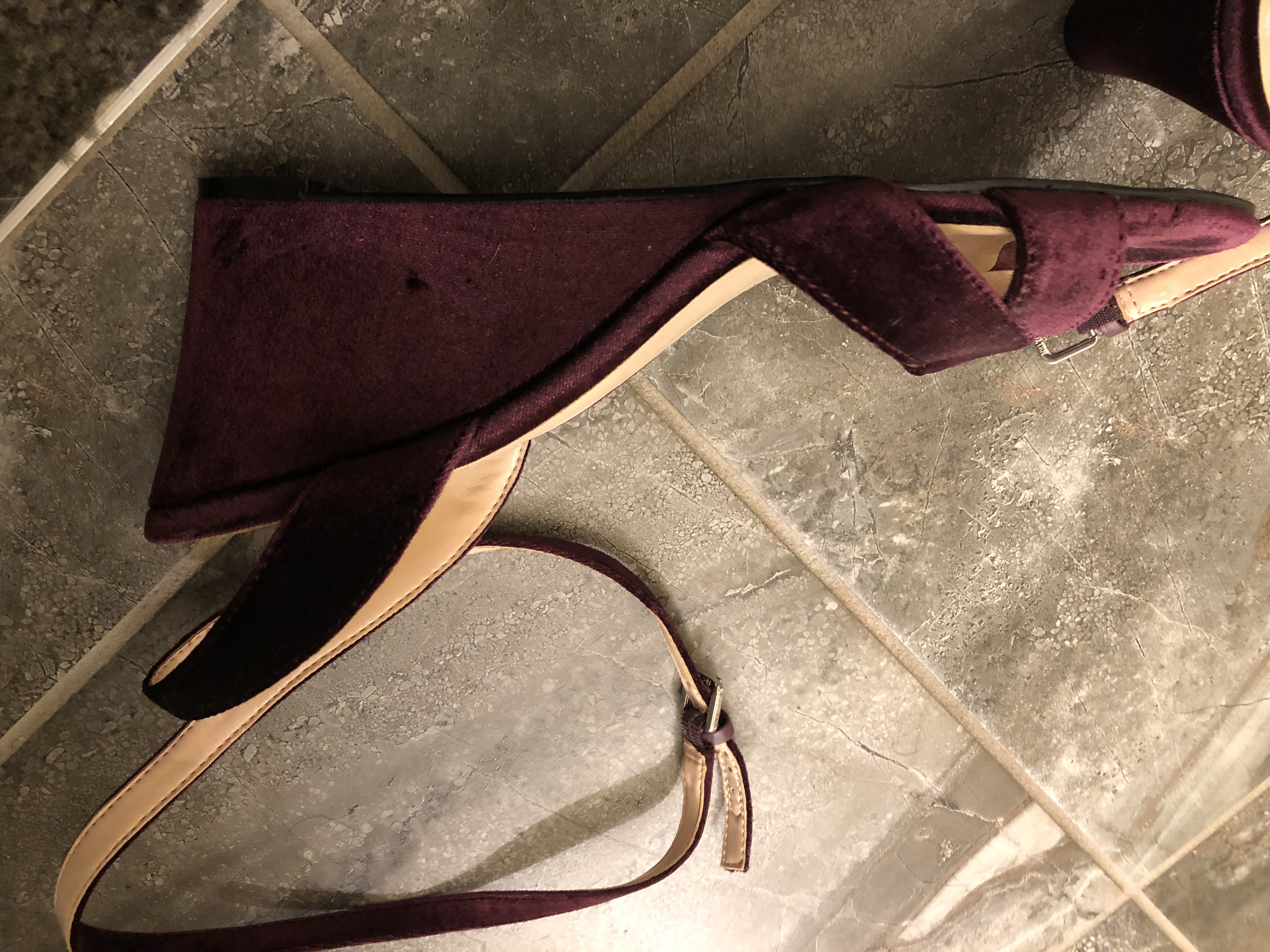 Burgundy velvet Nine West shoes size 8, wedge style only worn once bin