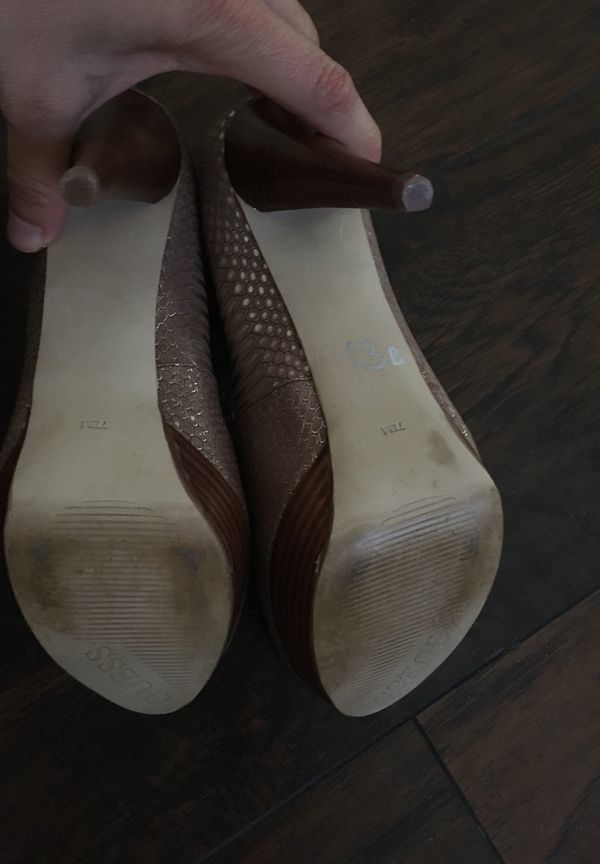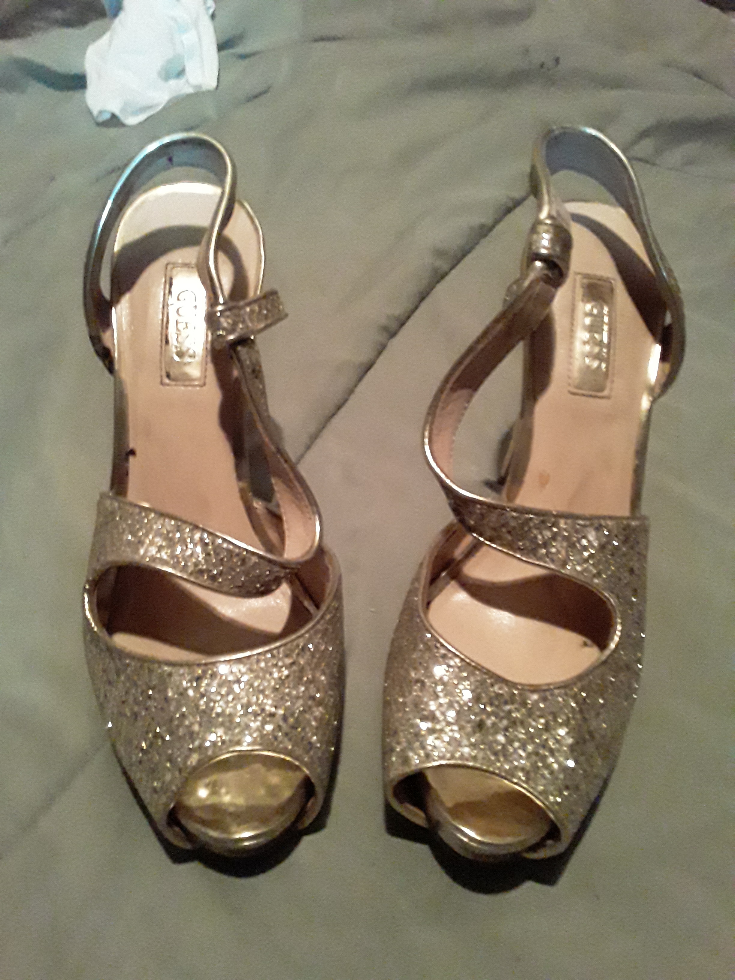 Guess brown heels, great condition (used once). No chips on heel. Golden details