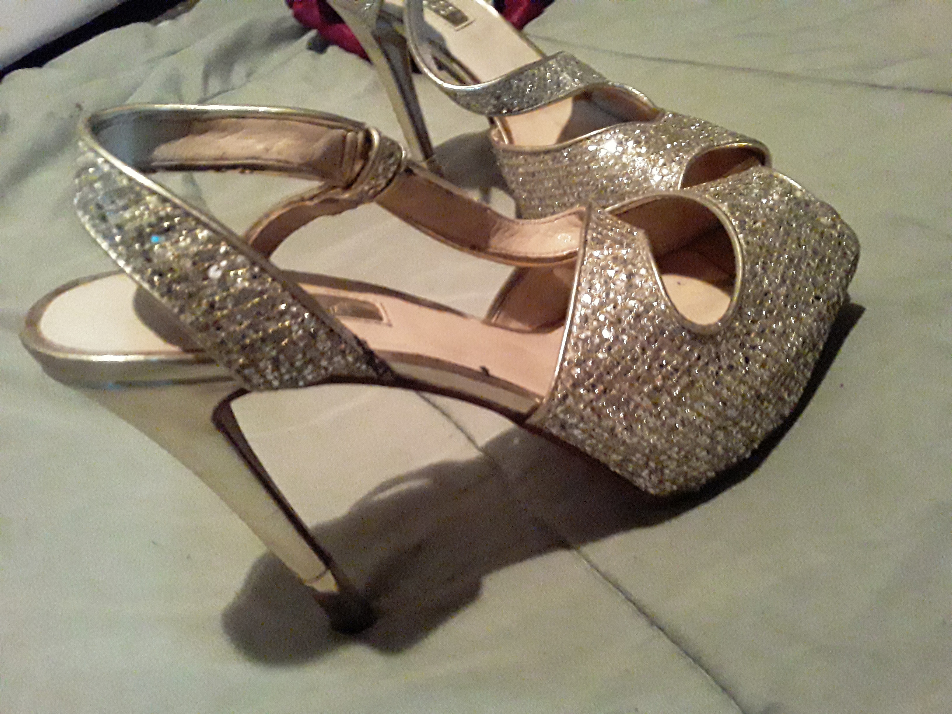 Sparkling silver beautiful heels, size 7.5. Great condition, no chips on the heels. Leather.
