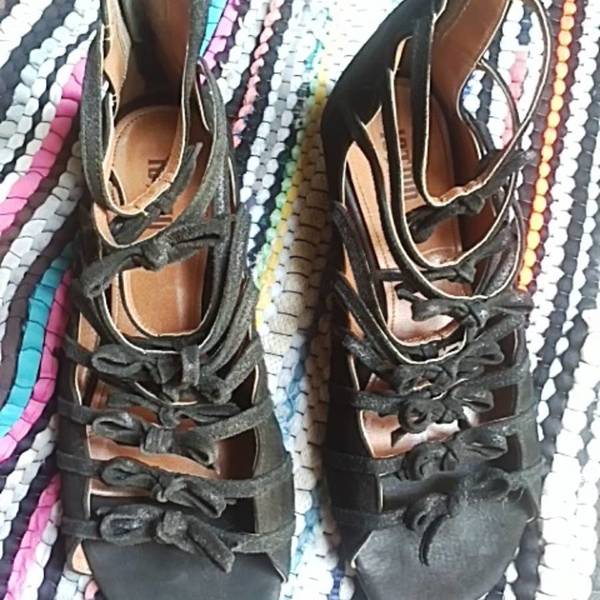 Black Wedge Strappy Sandals 8-8.5