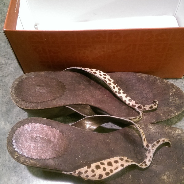 GAP flip flops with leopard print leather straps, size 8, bought for around $20, used twice at school. I'm trying to swap for more professional clothing and shoes.