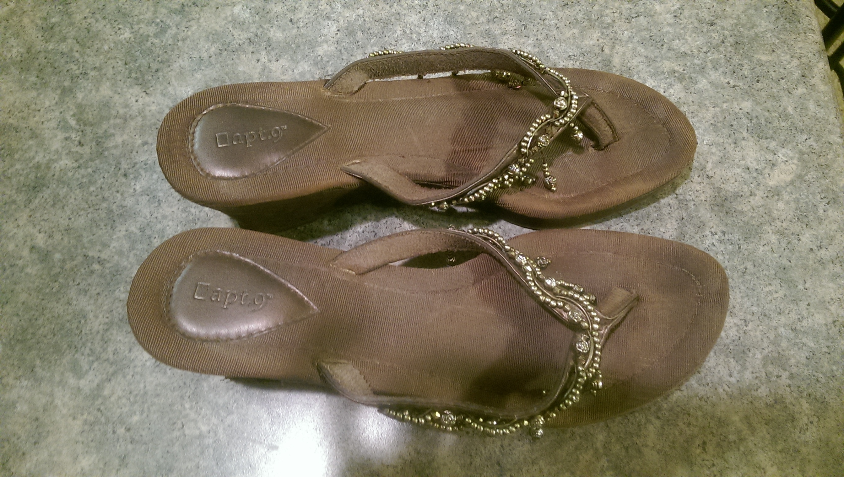 Apt 9 flip flops, size 8.5, bought for about $20, used lightly. I'm trying to swap for more professional clothing and shoes.