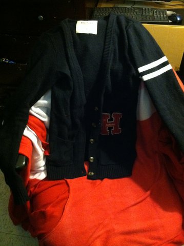 very warm hollister cardigan, I love it, but I want something else, ive had it for about 6 months and i have worn it about 3-4 times, there are no signs of damage or wear to it. it is a size small.