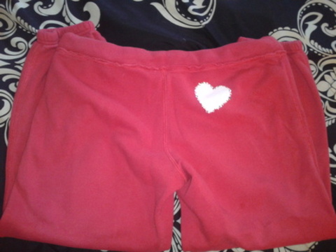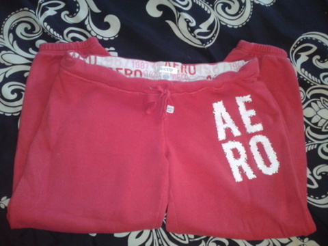 cute areopostle sweatpant with drawstings to adjust the size, and a heart on the butt. they say areopostle on the side. they are super cute and comfy. can be worn like a regular sweatpant, or pushed up to the knee.