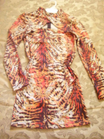 Orange & pink, comfy & great for lazing around in. Size S, zips up the back.