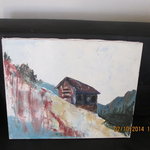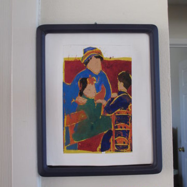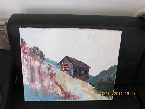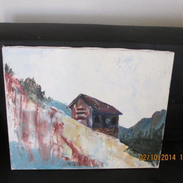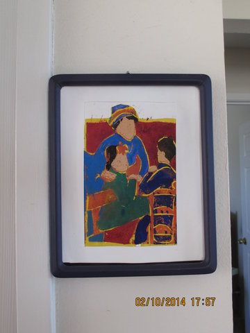 This is acrylic or oil. I am not sure which. I only put good because there is a tiny pin prick in the upper right corner. Not at all noticeable. Interesting use of light by artist and the texture is lovely.