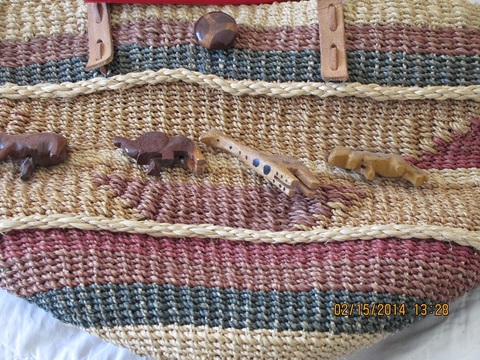 Straw tote with leather handles and african animals