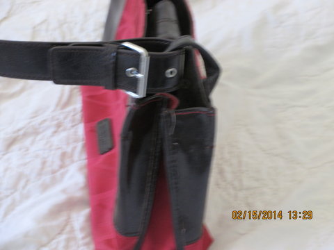Medium size purse. It has no damage, wear or stains on or in it. Lots of pockets for organization.