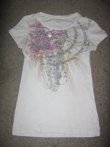 Cute t-shirt style top, brand is Daisy Fuentes. Size small. Little rhinestones on it.