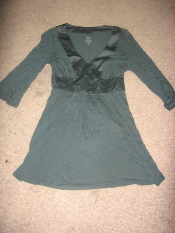 Very pretty, a deep green color. It has an attached sash that ties in the back for a flattering silhouette.