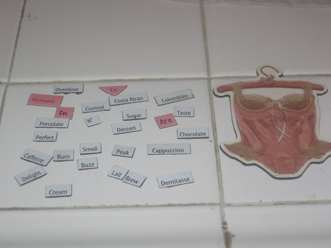 Just cleaned off my fridge - I have too many magnets! Most are little words, plus the bigger pink one. Free with a swap, just ask!:-)