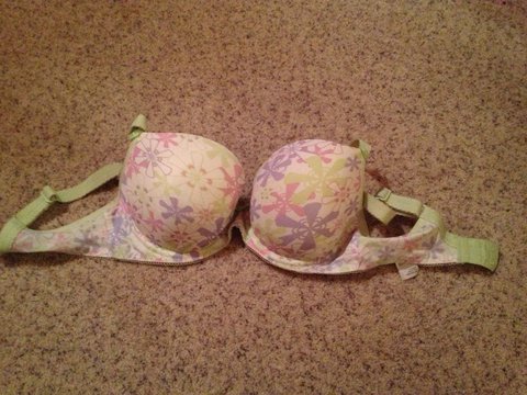 This bra is almost brand new. I wore it once and decided it wasn't the right fit for me. I don't normally like underwires and it has one. It's a great t-shirt bra. It's marked a 30F, but it fits as a 30DD