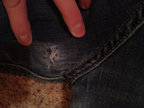 These are great jeans, they're just too big for me now. There is a slight bit of wearing (I've included a picture) around the crotch of the jeans, which is why I marked it "meh". It can easily be patched or sewn. It's not visible when you're wearing them