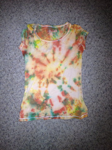 This was originally a white shirt that I tye dyed. It fits like a normal small