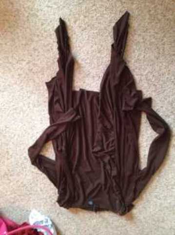 This was worn once. It's a black surf rash guard. It's a kids XL, but I'm a small and it fits