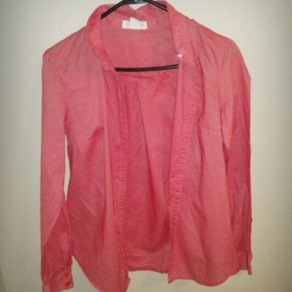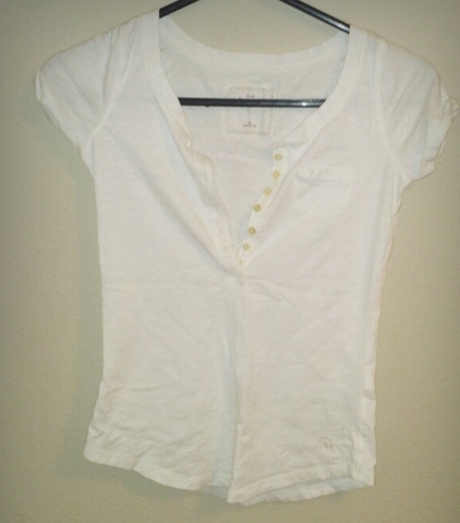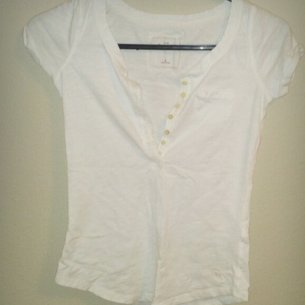 White abercrombie shirt, with buttons , and to the side of the buttons it has detail. With a pocket to the side.