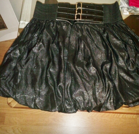 Black skirt with a belt attached to it. The Belt is adjustable.