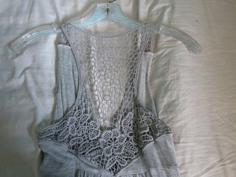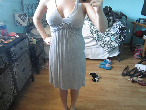 grey dress. nice quality, its from nordstroms rack. never been worn. size small but it stretches so it could fit a medium. cute detailing on the back