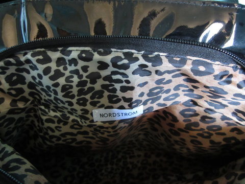 large black bag from nordstroms, one stud is missing. brand new. will hold a lot. cute cheetah detailing on the inside!