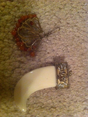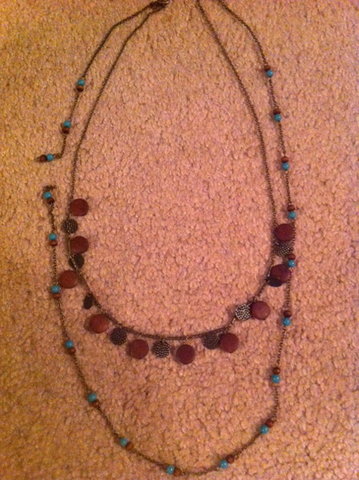 I have a really cute two-layer beaded necklace that has a broken link someone with jewelry making skills could probably fix. Also the two pendants. If you would like one or all of these and we're already making a trade, please let me know and I'll throw them in.