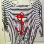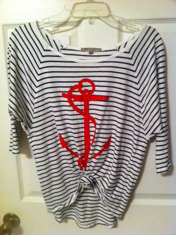 Dolman sleeve tee. It didn't actually come knotted up, but it was too long for me. I thought it was really cute knotted. I put the condition as good because it's been that way for so long it may be stretched out. Cute worn as is though.