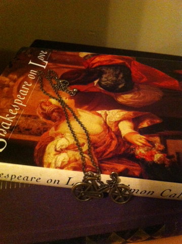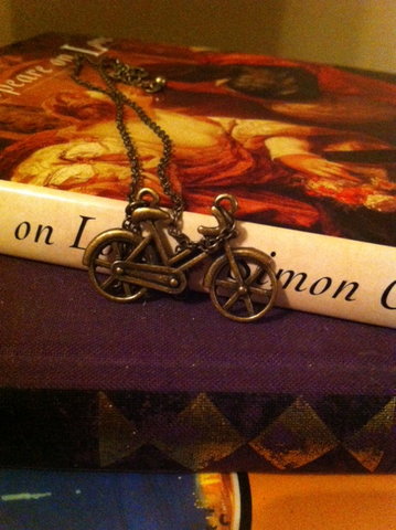 I took the tag off but never wore it. Too cute. The little bike is about an inch long.