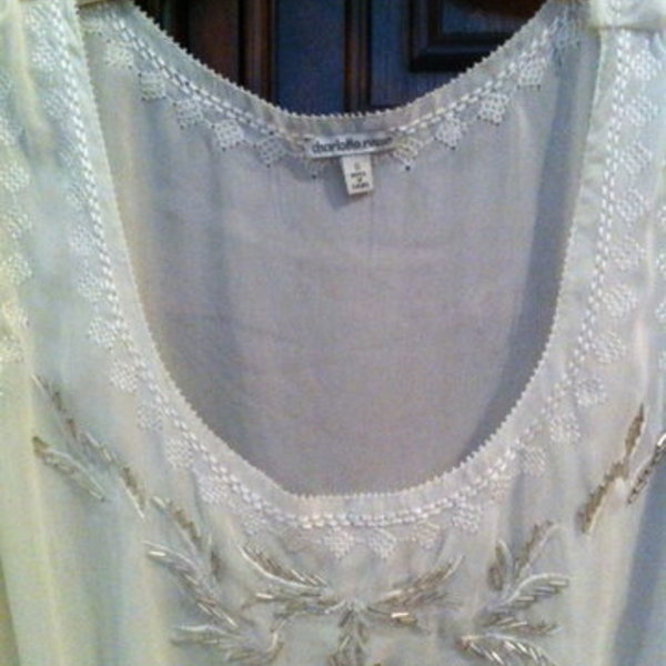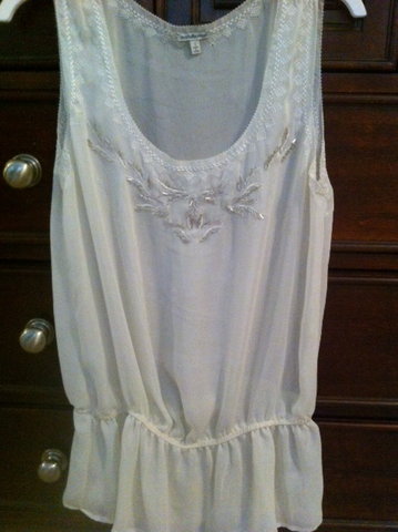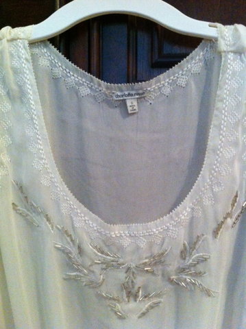 Worn a couple of times, but you can't tell. Looks new! Very pretty detail on the neckline.