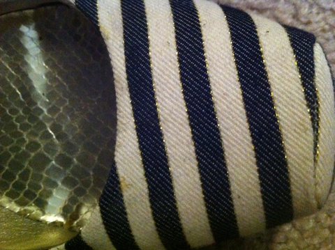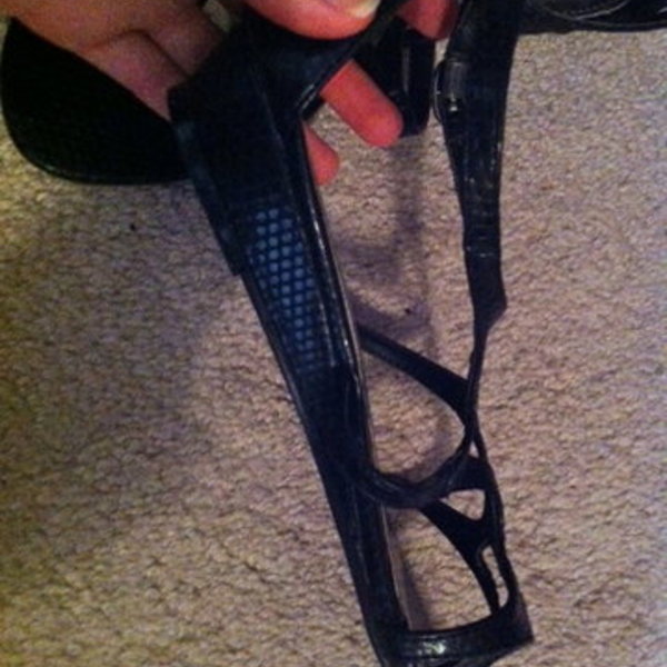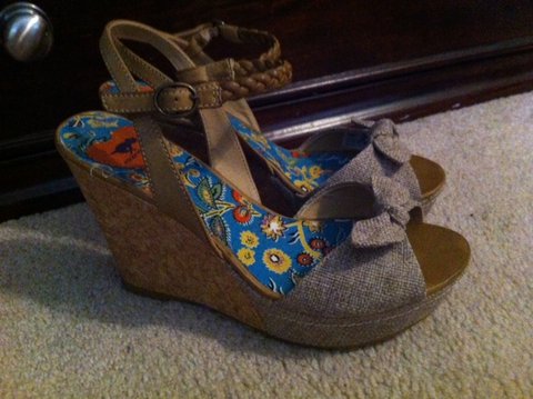 Only worn once or twice. The strap shoes some signs of wear from being buckled and unbuckled. Other than that, they look fantastic. Small wedge.